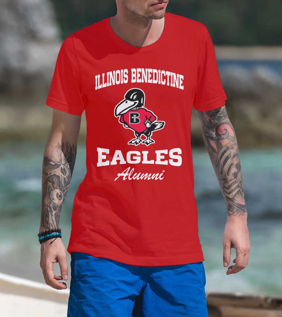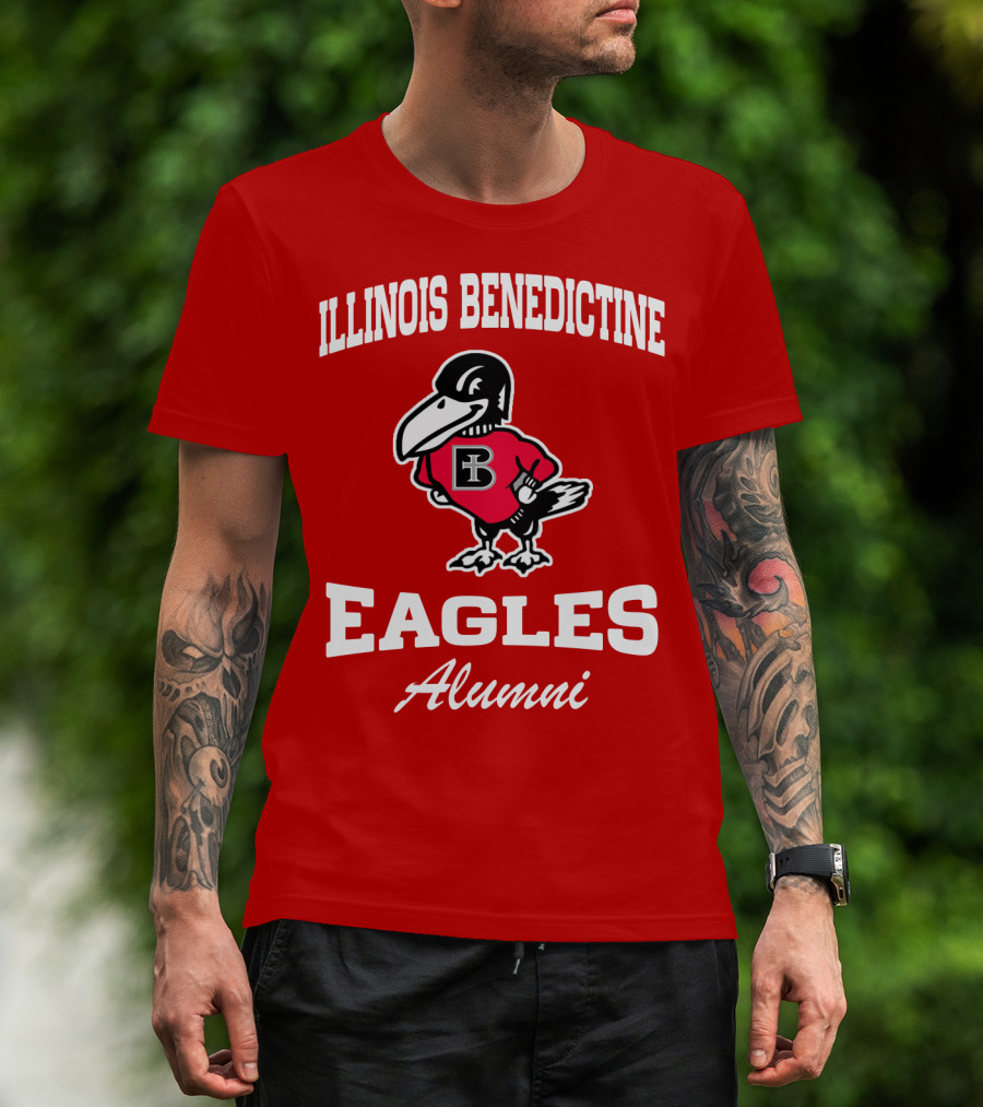 The Illinois Benedictine Eagles Alumni T-shirt is designed for everyday wear and a consistent fit. Fabric is pre-shrunk ring-spun cotton with durable stitching. See the size chart below for exact measurements.