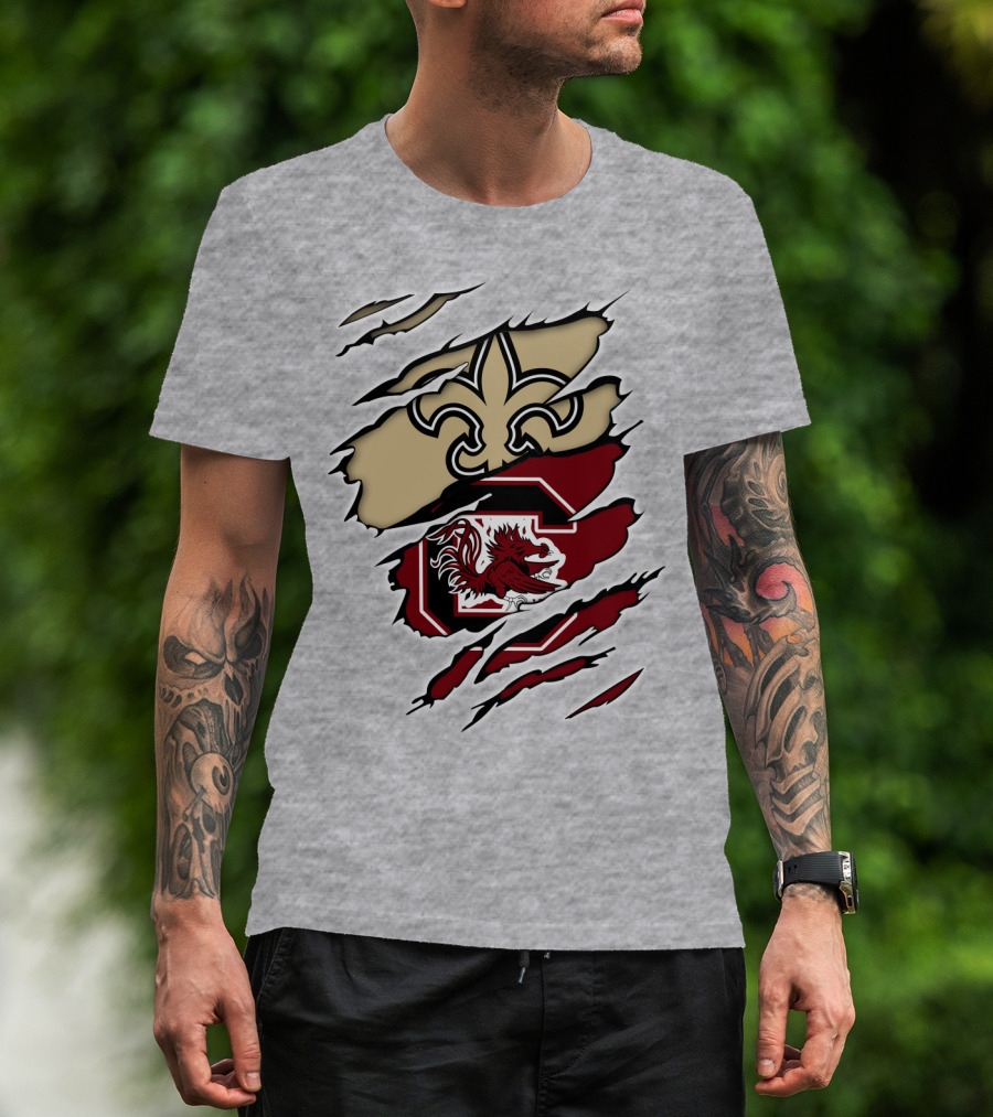New Orleans Saints And South Carolina Gamecocks Logo Fusion T-Shirt