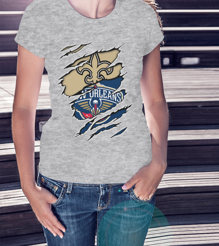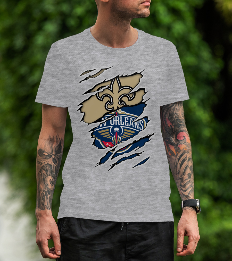 New Orleans Saints Pelicans Fleur-de-Lis Rip T-Shirt