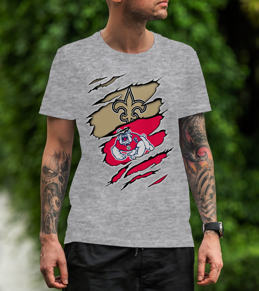 Fresno State Bulldogs And New Orleans Saints Emblem Fusion T-Shirt