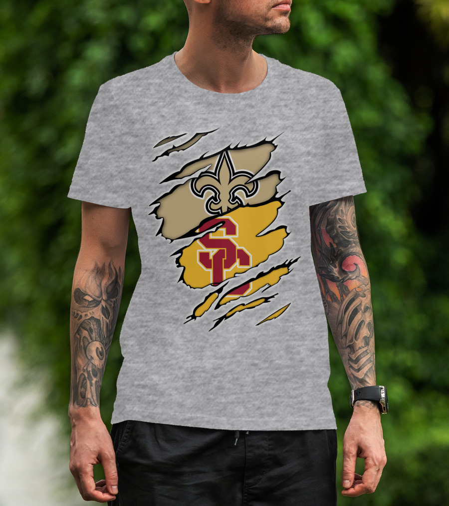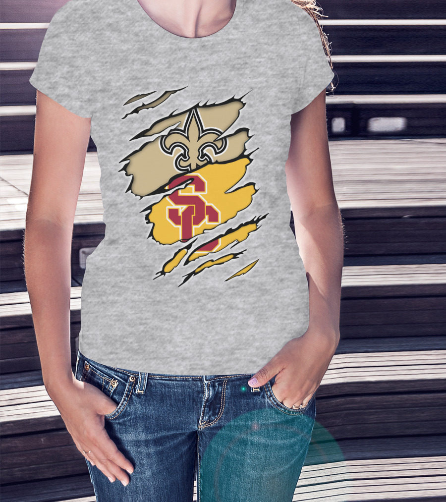 Saints Trojans USC Fleur-de-Lis Logo Combination T-Shirt