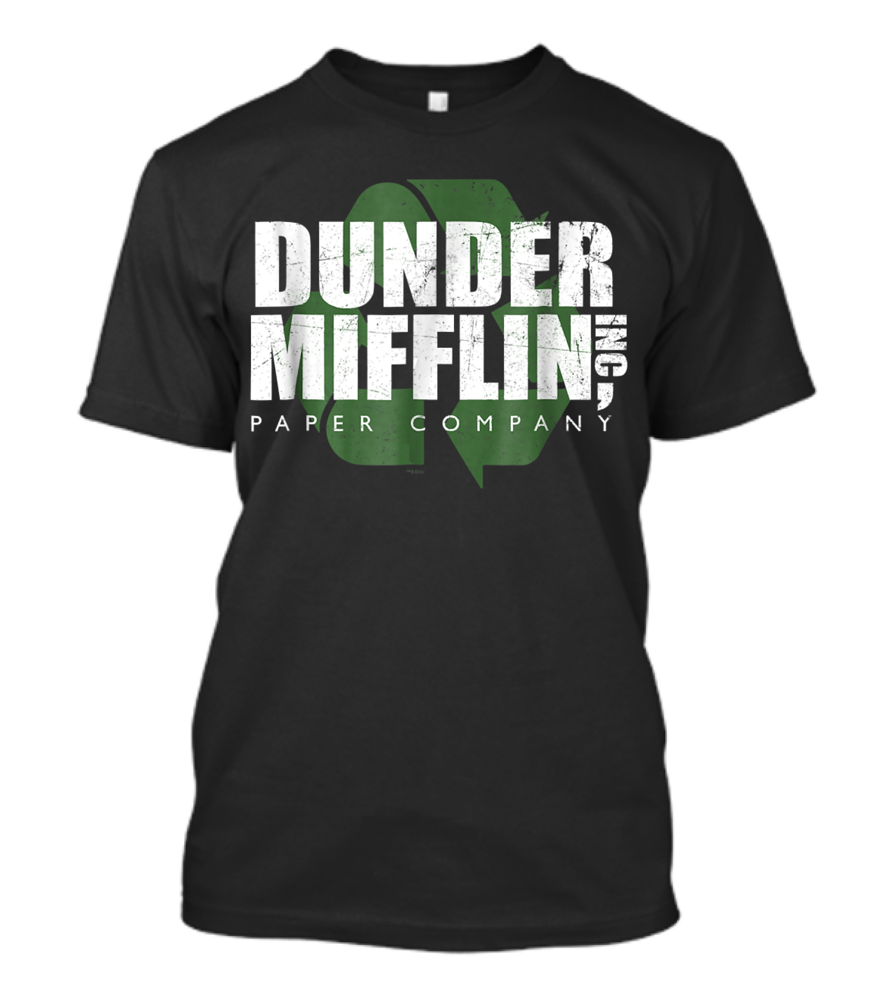 The Dunder Mifflin Paper Company Recycle Logo Comfortable T-shirt is designed for everyday wear and a consistent fit. Fabric is pre-shrunk ring-spun cotton with durable stitching. See the size chart below for exact measurements.