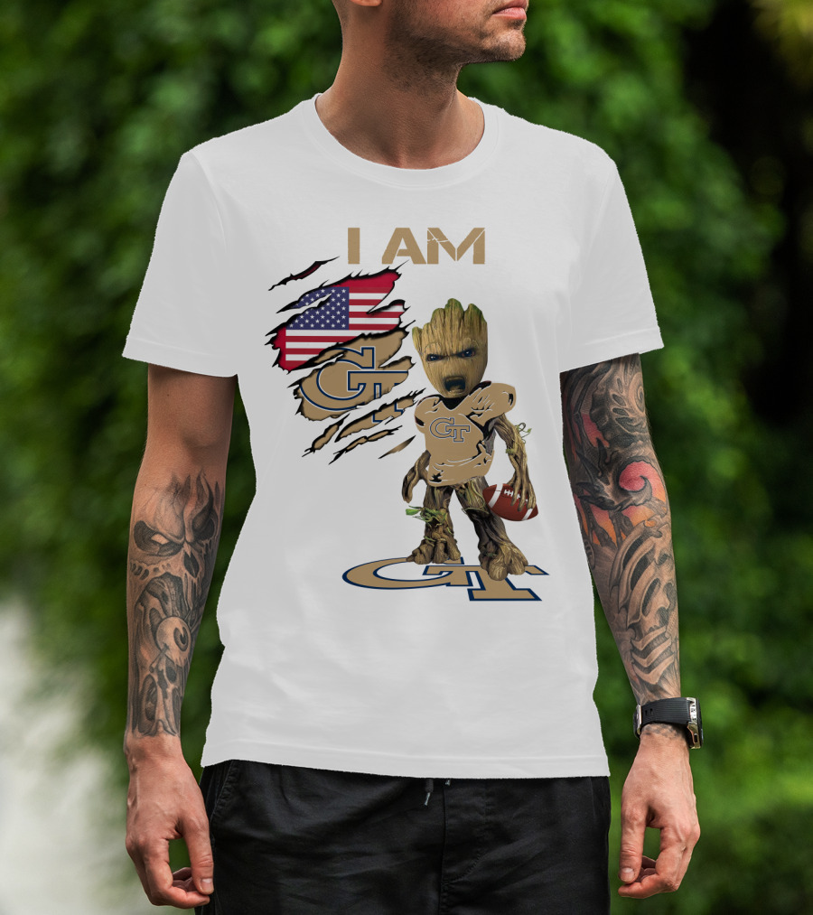 I AM Geo Baby Groot Football GT American Flag T-Shirt