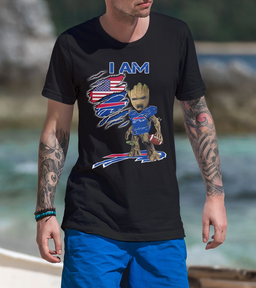 I Am Groot Buffalo Bills American Flag Football T-Shirt