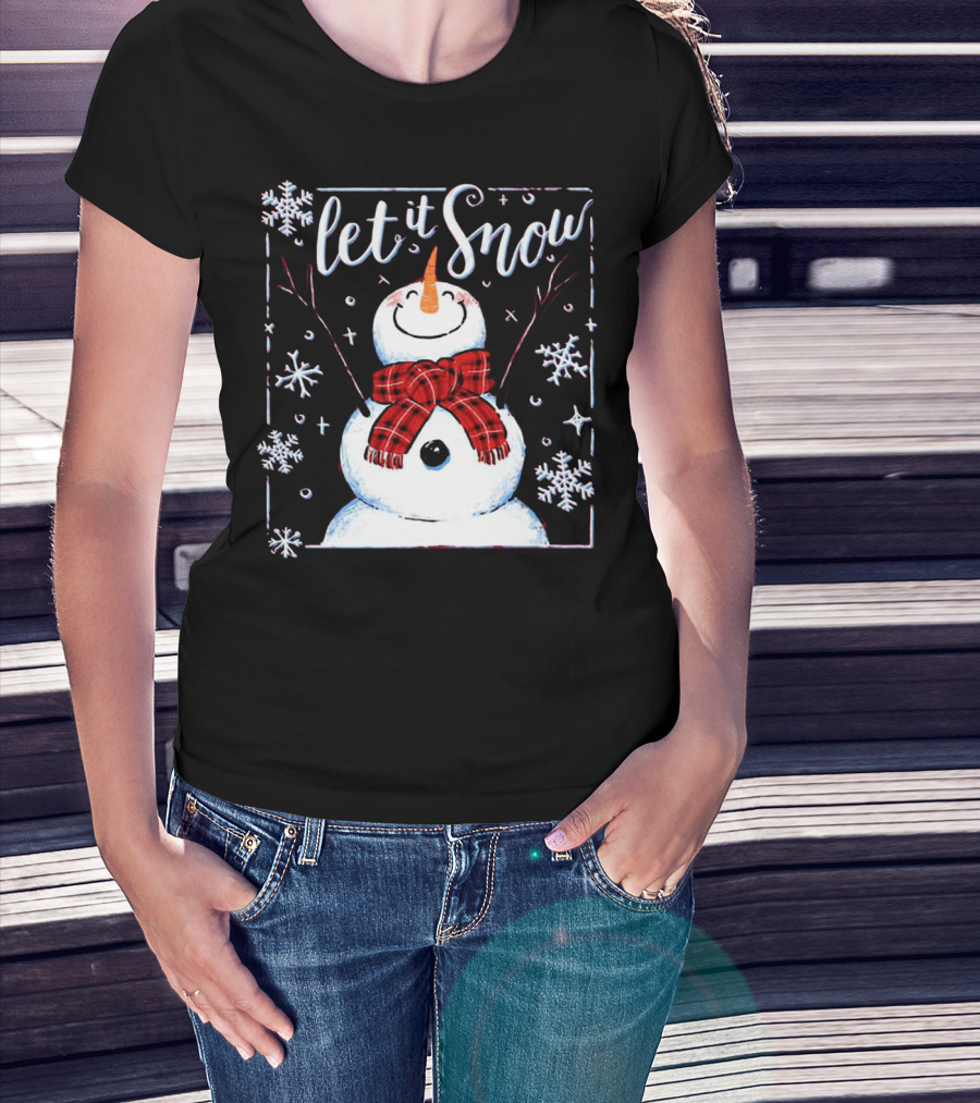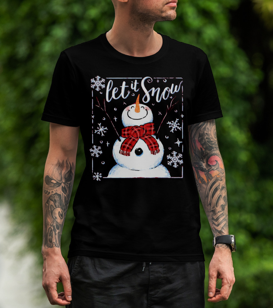 Let It Snow Santa Snowman With Scarf And Snowflakes T-Shirt