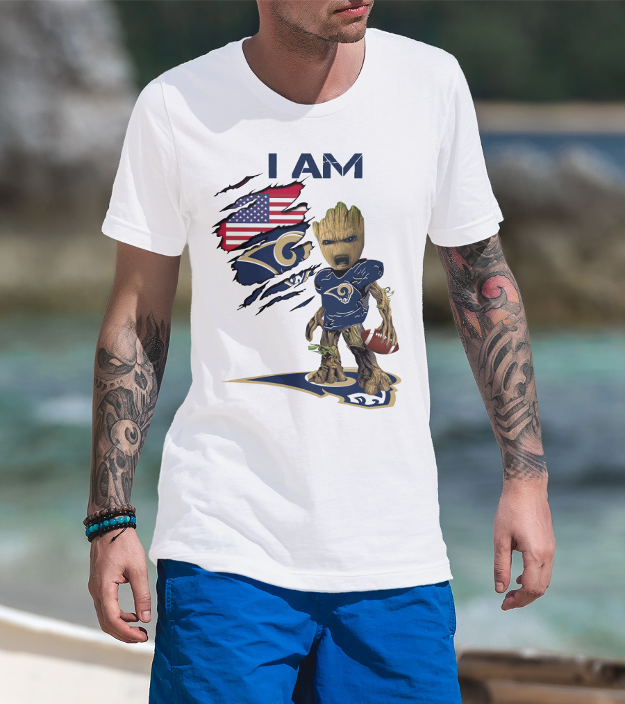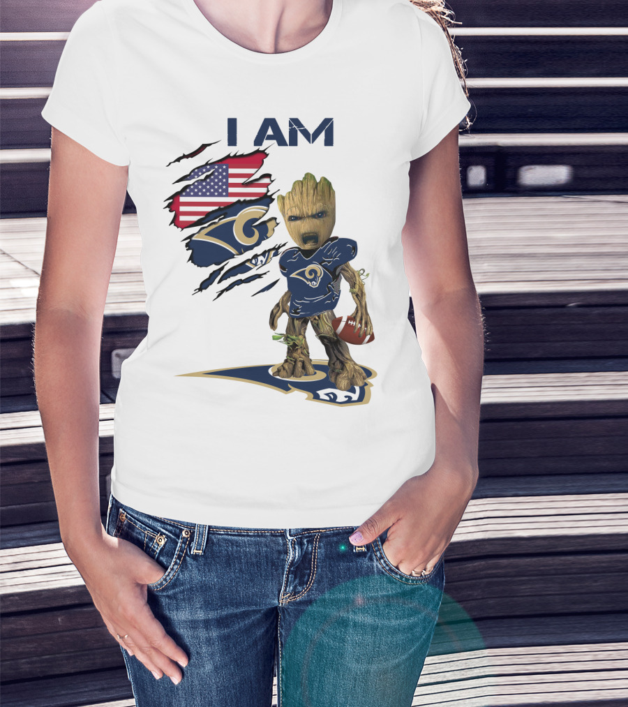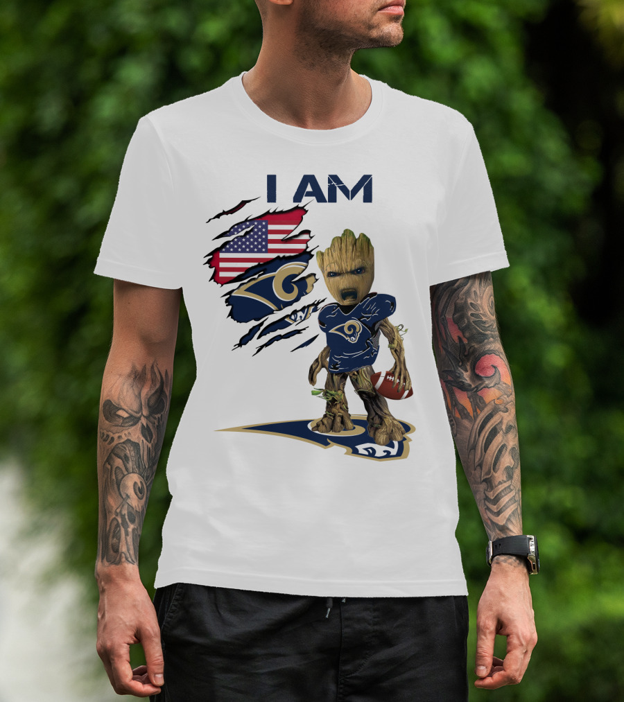 I AM Rams Baby Groot Football USA Flag T-Shirt