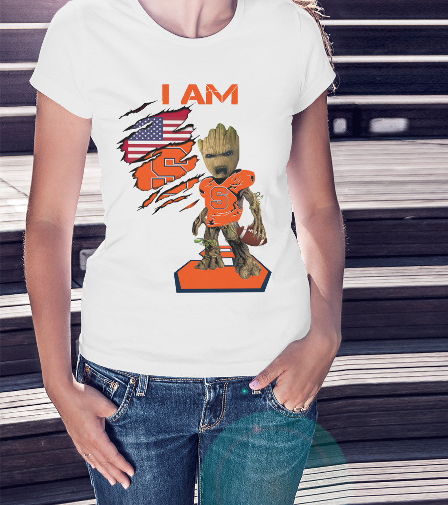 I AM Baby Groot Syracuse Football American Flag T-Shirt