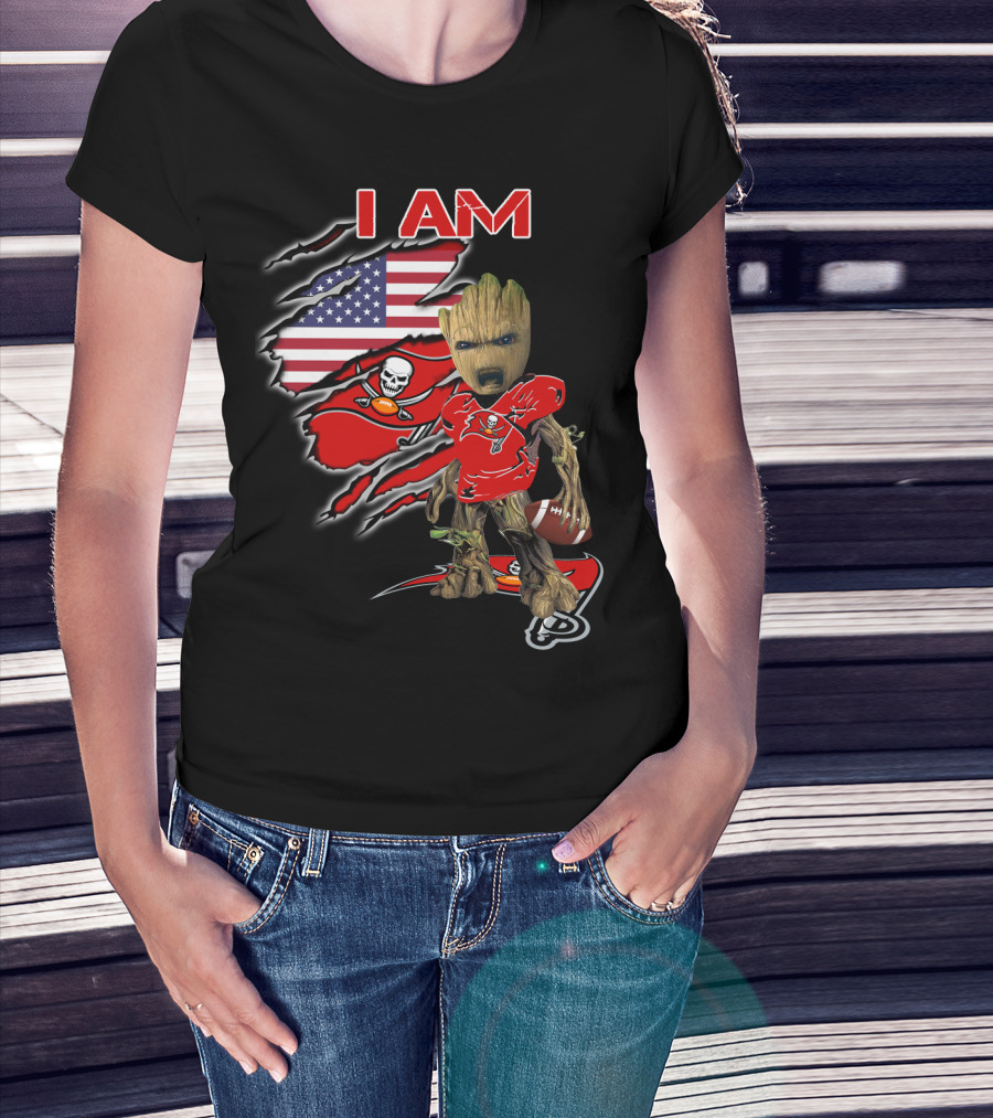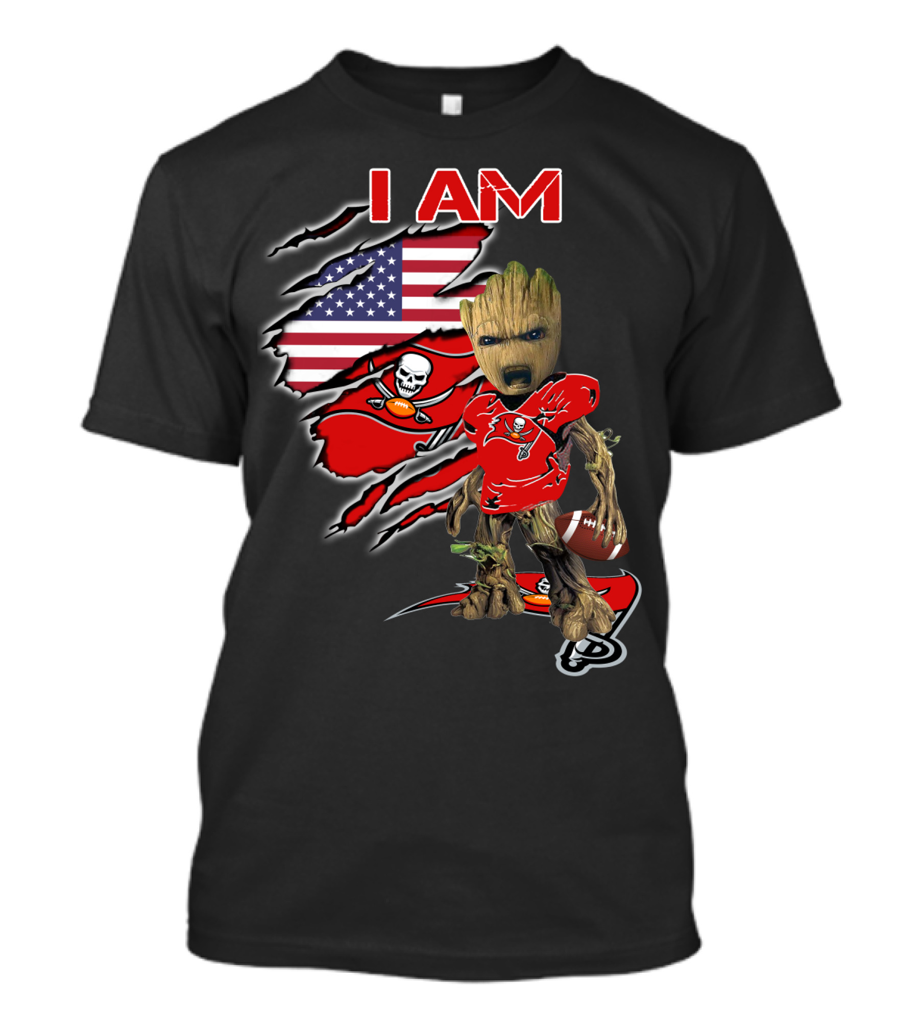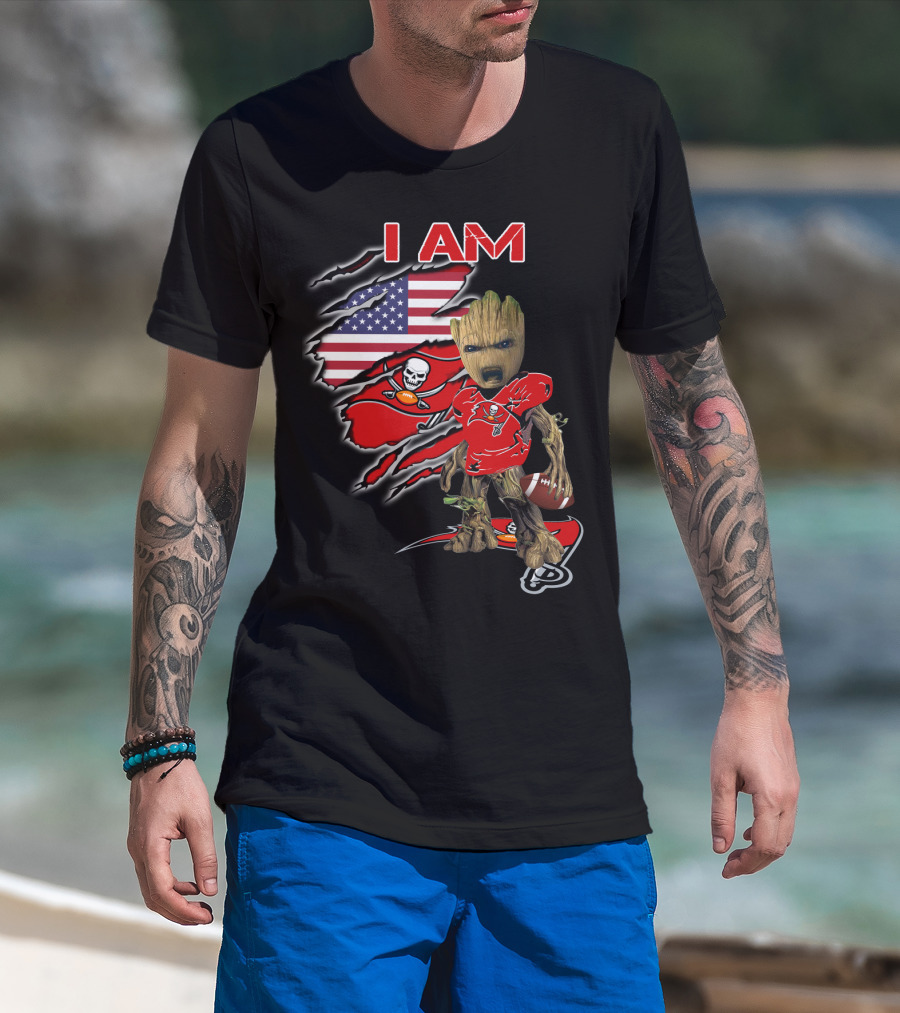I AM Buc Baby Groot American Flag Buccaneers Football T-Shirt