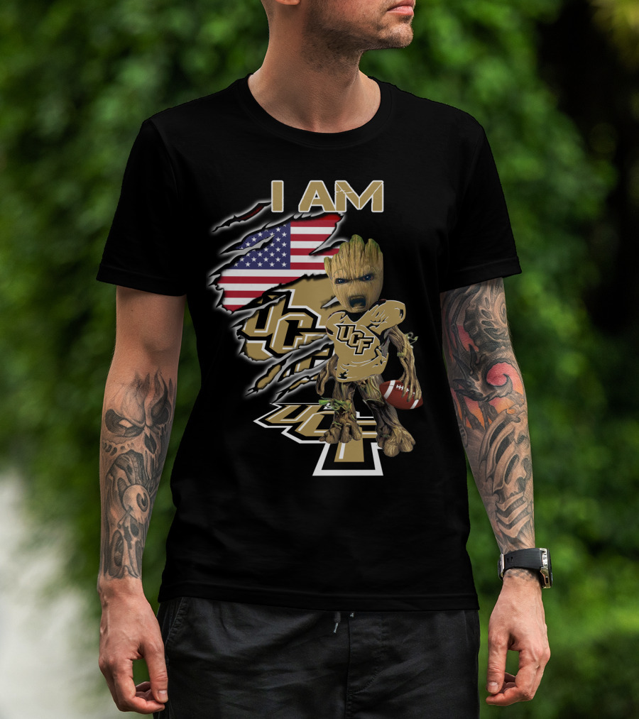 I AM UCF Baby Groot Football American Flag T-Shirt