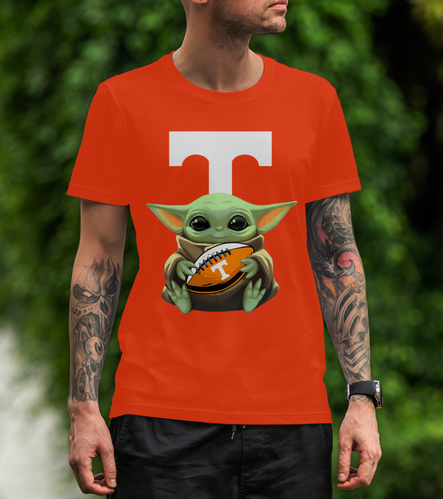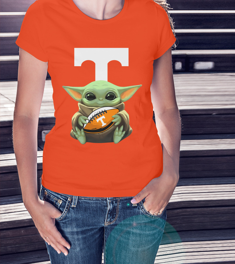 Baby Yoda Holding Tennessee Volunteers Football Ball T-Shirt