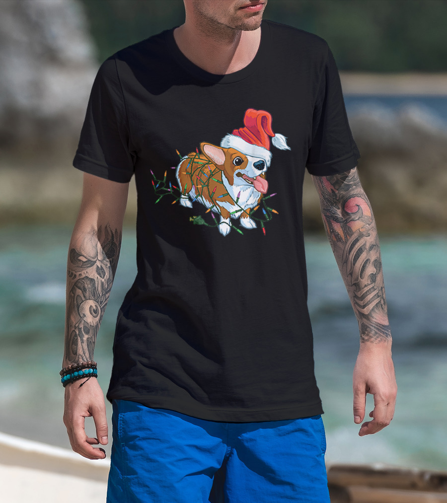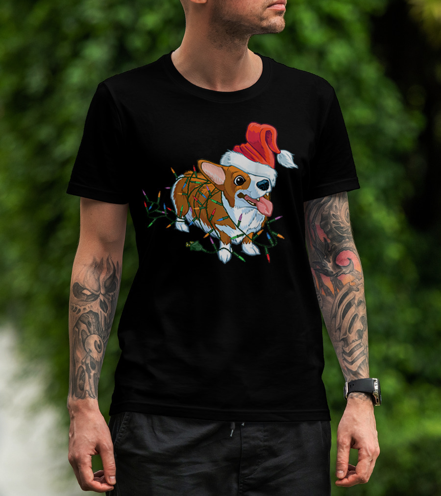 The Corgi Christmas Lights Santa Hat T-shirt is designed for everyday wear and a consistent fit. Fabric is pre-shrunk ring-spun cotton with durable stitching. See the size chart below for exact measurements.