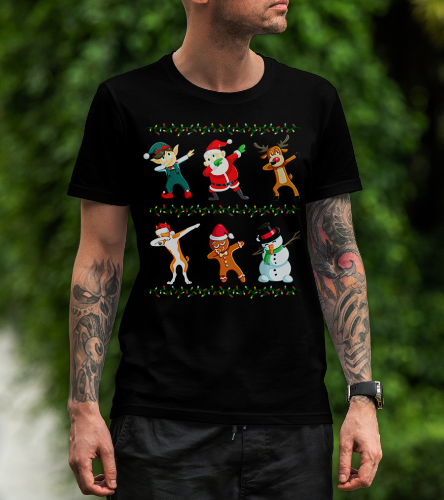 Dabbing Santa Basenji Elf Reindeer Gingerbread Snowman Christmas Lights T-Shirt