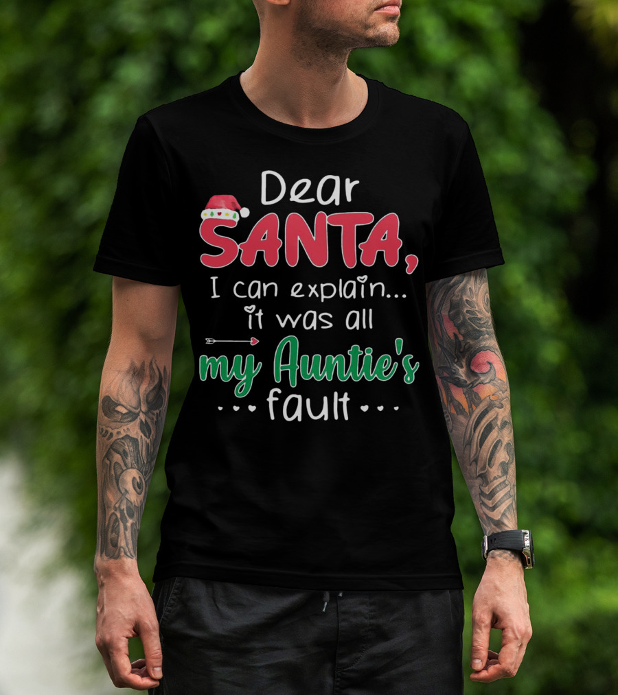 Dear Santa I Can Explain It Was All My Auntie's Fault Santa Hat Heart Arrow Decor T-Shirt