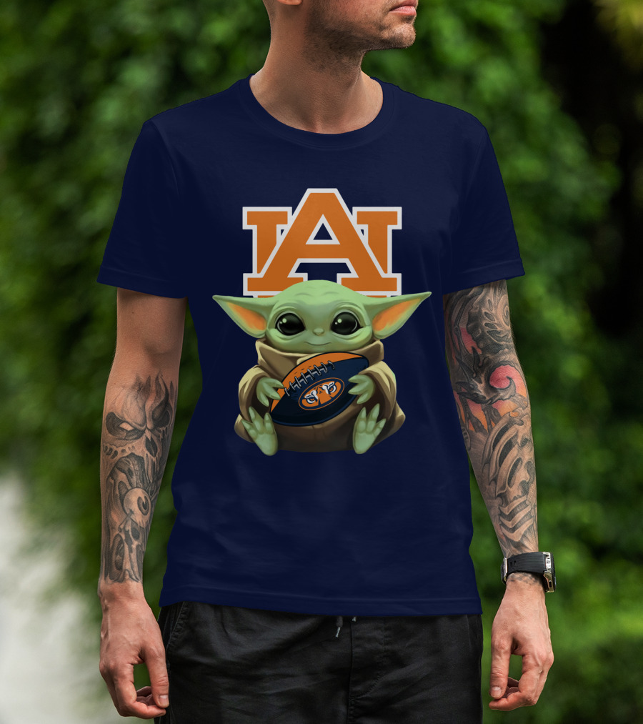 Baby Yoda Holding Football Auburn Tigers T-Shirt