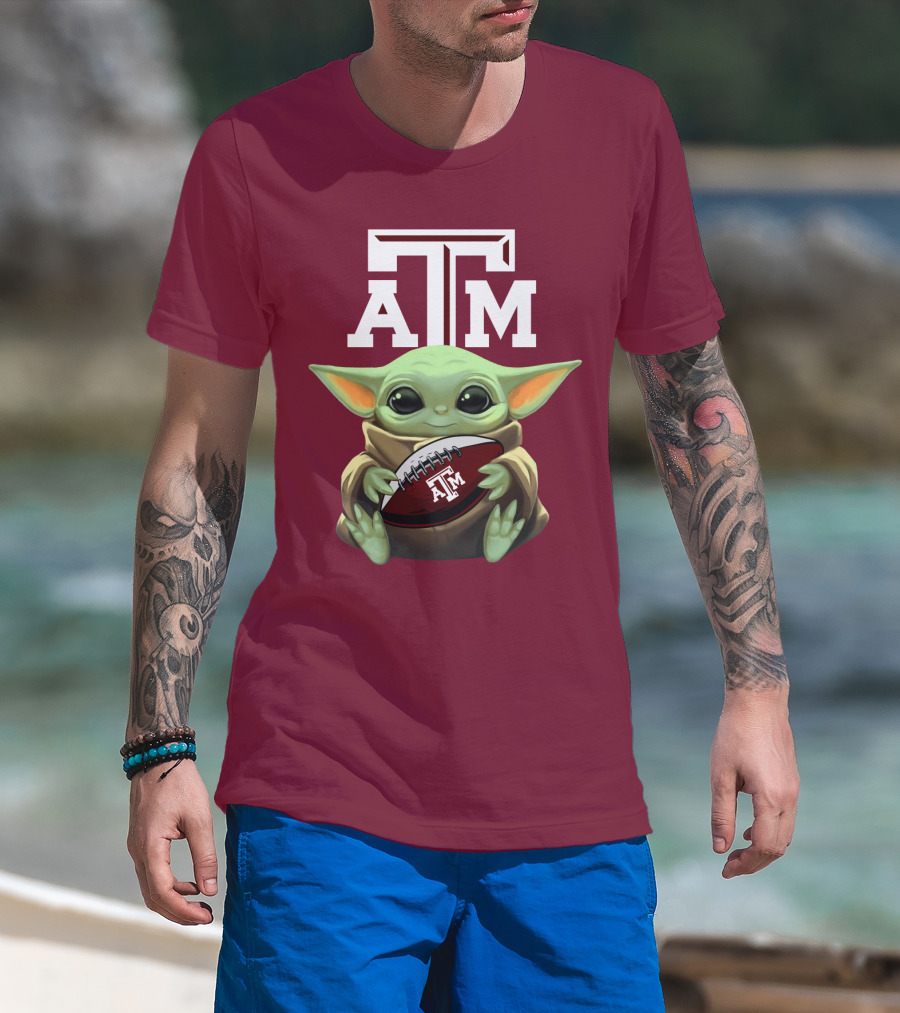 Texas A&M Aggies Baby Yoda Football T-Shirt