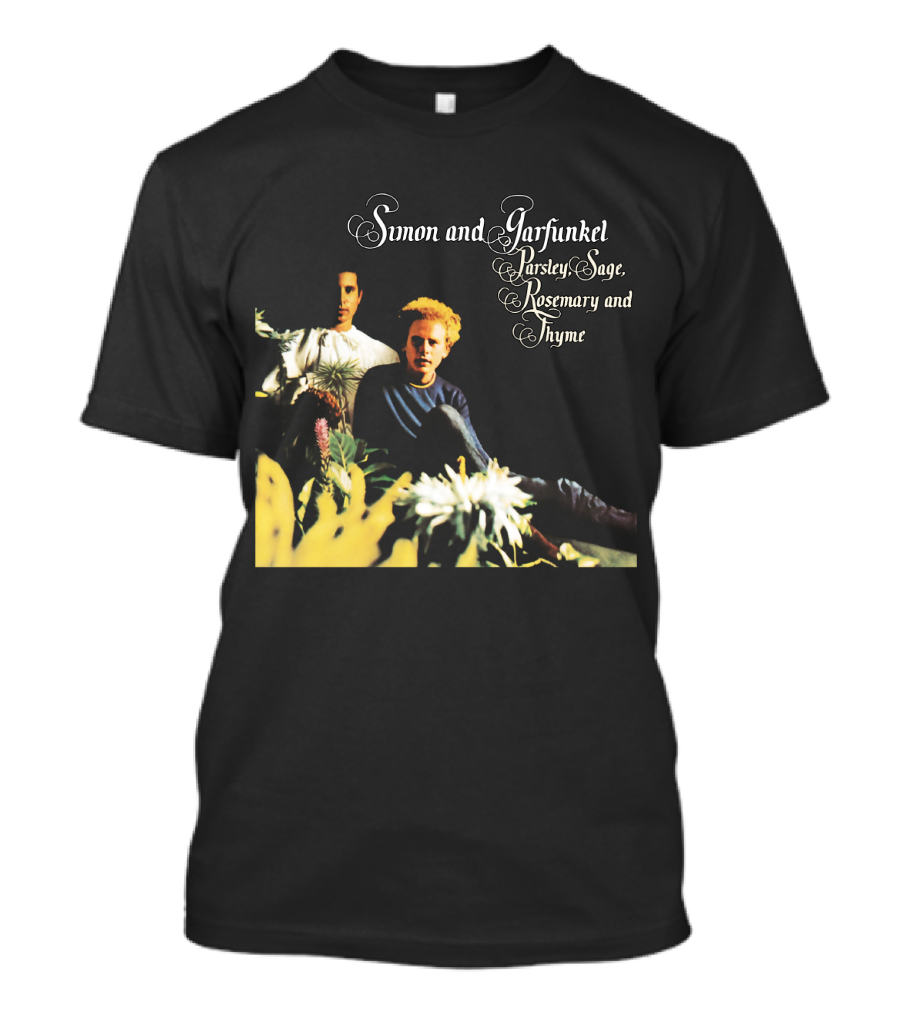 The Simon and Garfunkel Parsley Sage Rosemary and Thyme Album Cover T-shirt is designed for everyday wear and a consistent fit. Fabric is pre-shrunk ring-spun cotton with durable stitching. See the size chart below for exact measurements.