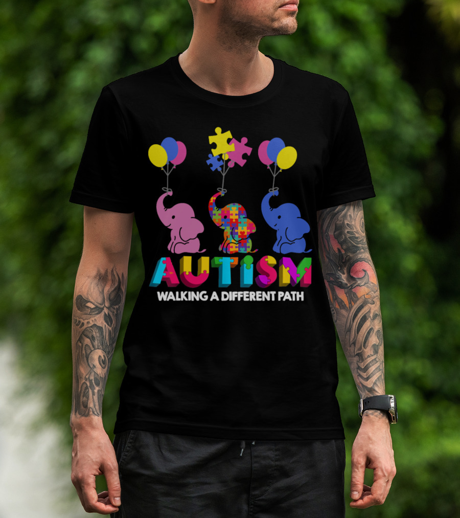 Autism Walking A Different Path Colorful Elephants And Balloons T-Shirt