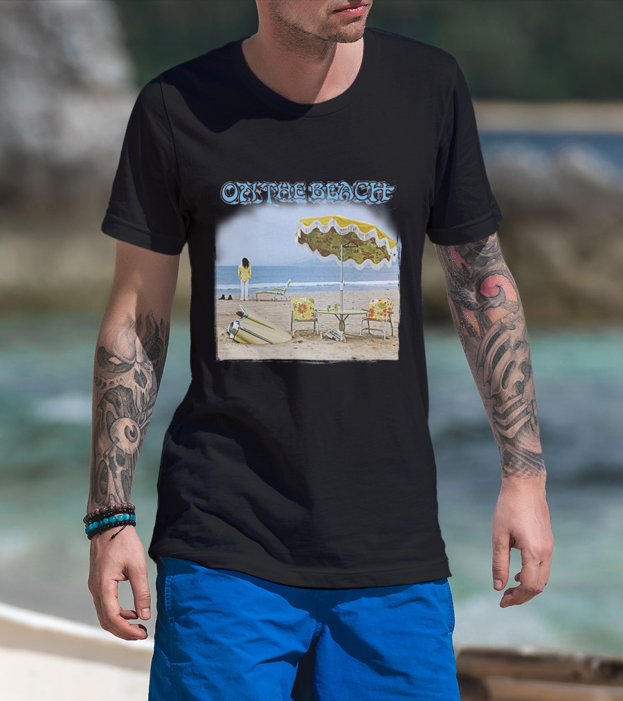 Neil Young On The Beach Vintage Album Cover Surreal Coastal Scene T-Shirt