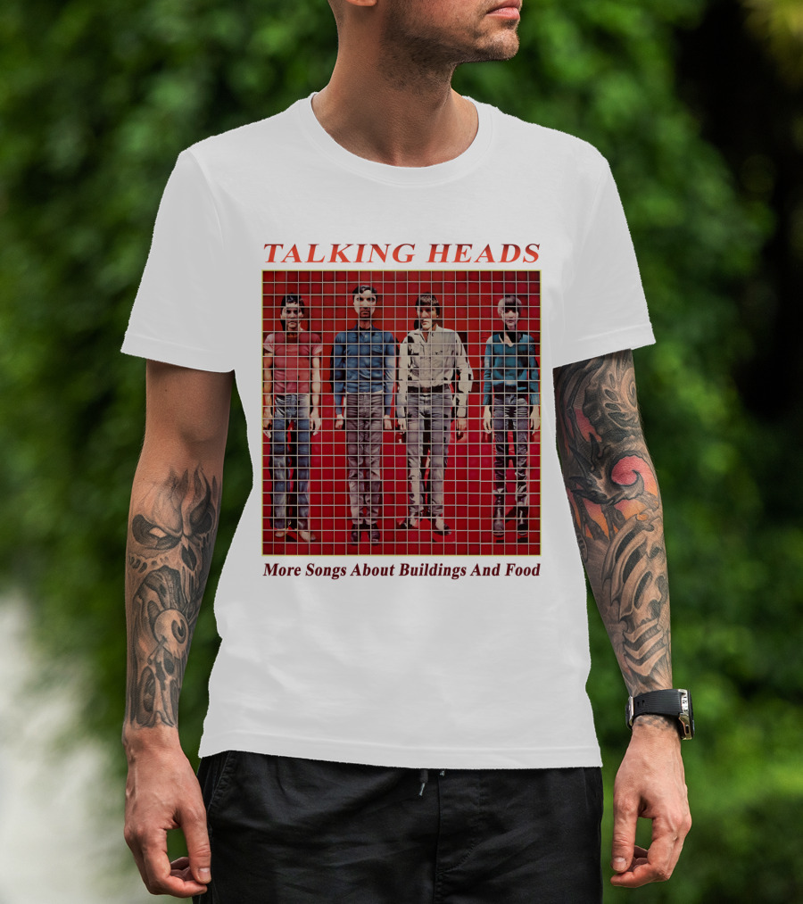 The TALKING HEADS More Songs About Buildings And Food Album Cover with Grid T-shirt is designed for everyday wear and a consistent fit. Fabric is pre-shrunk ring-spun cotton with durable stitching. See the size chart below for exact measurements.