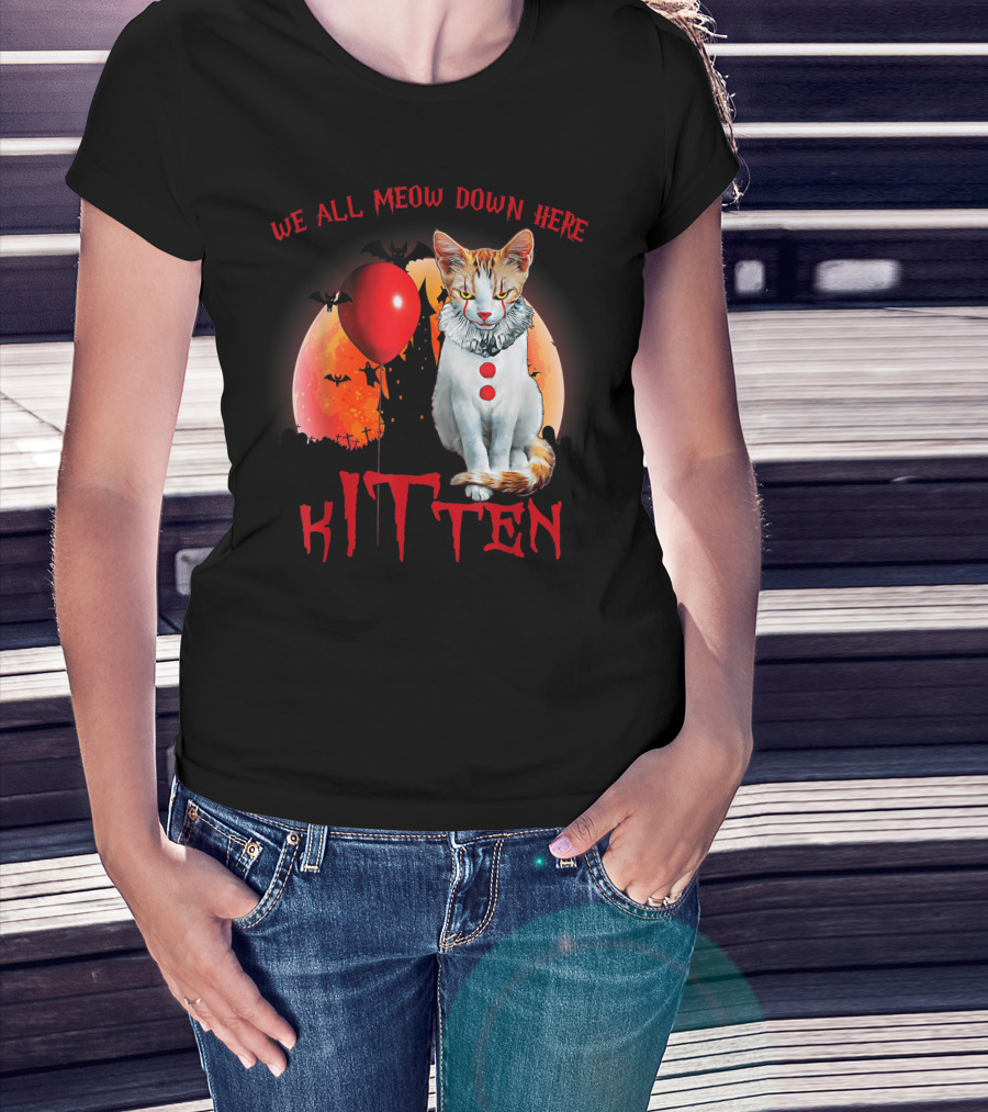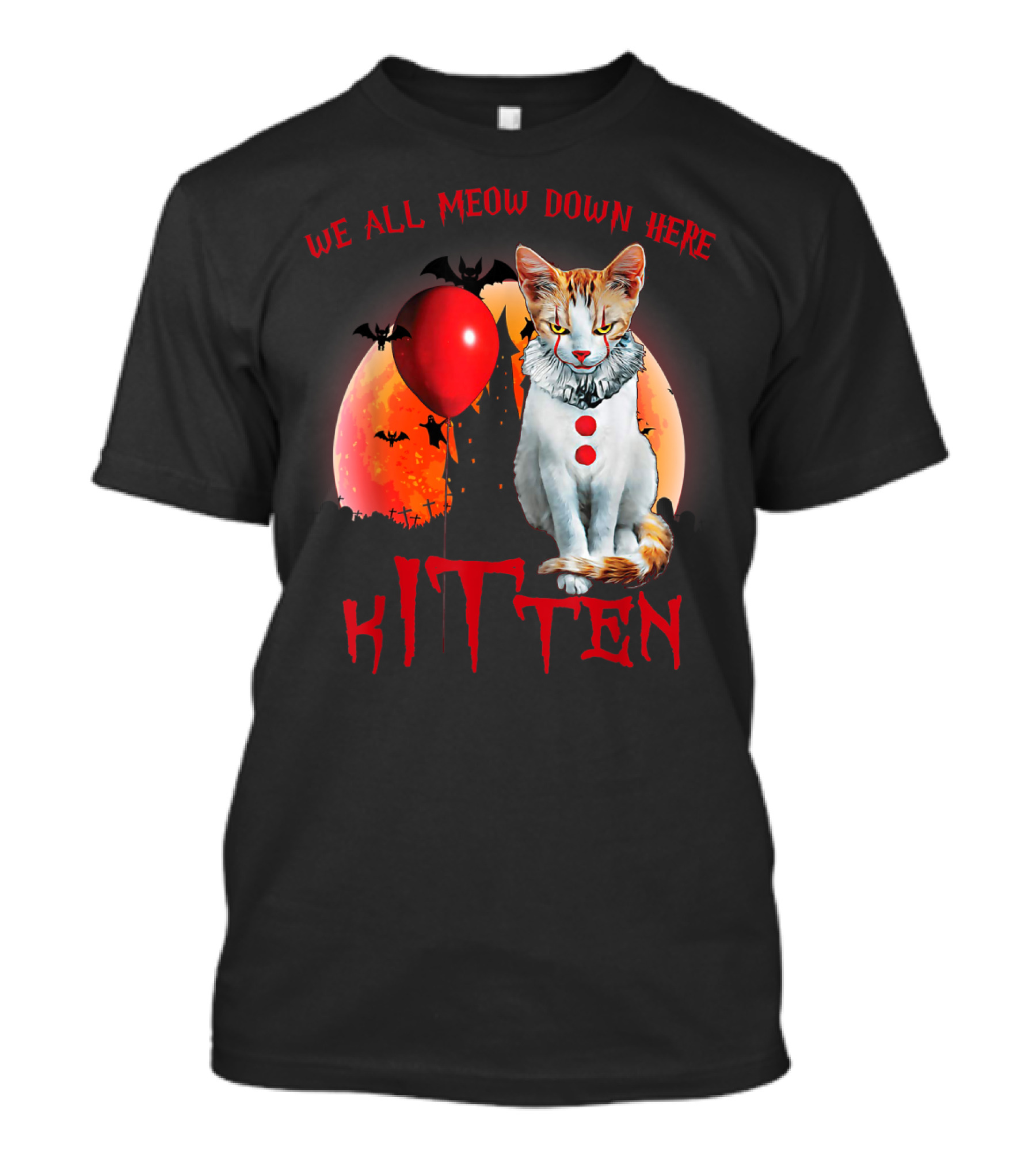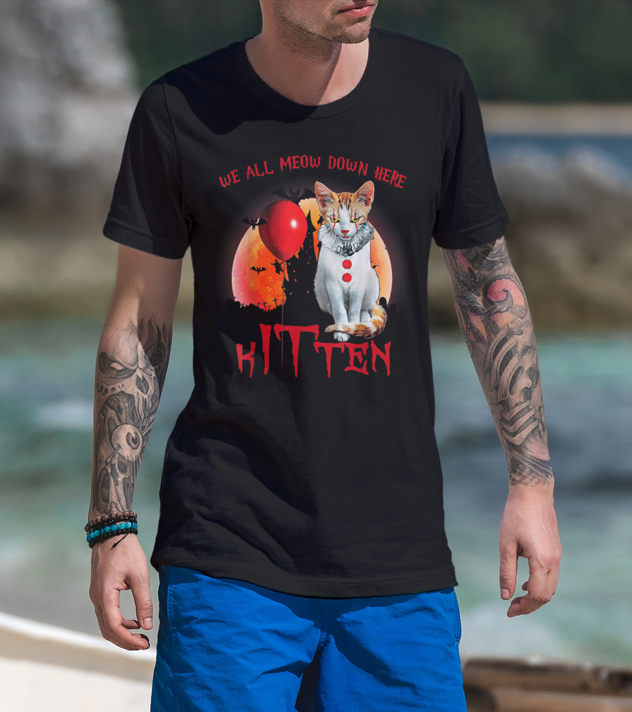 We All Meow Down Here Kitten Clown Cat Red Balloon Bat T-Shirt