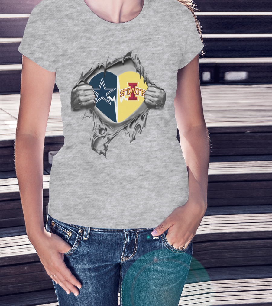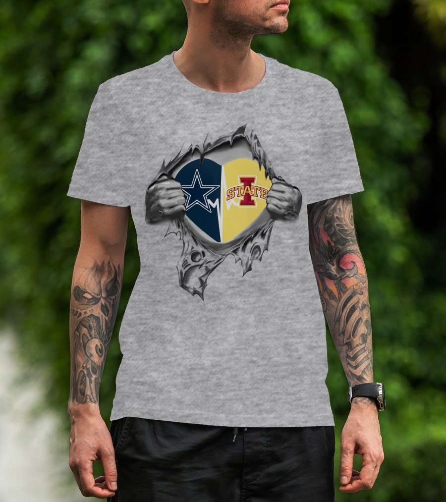 Dallas Cowboys And Iowa State Cyclones Split Heart T-Shirt
