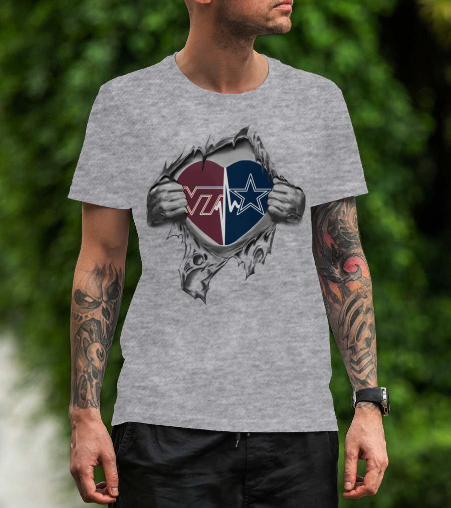 The Cowboys Hokies Heart Logo Split T-shirt is designed for everyday wear and a consistent fit. Fabric is pre-shrunk ring-spun cotton with durable stitching. See the size chart below for exact measurements.