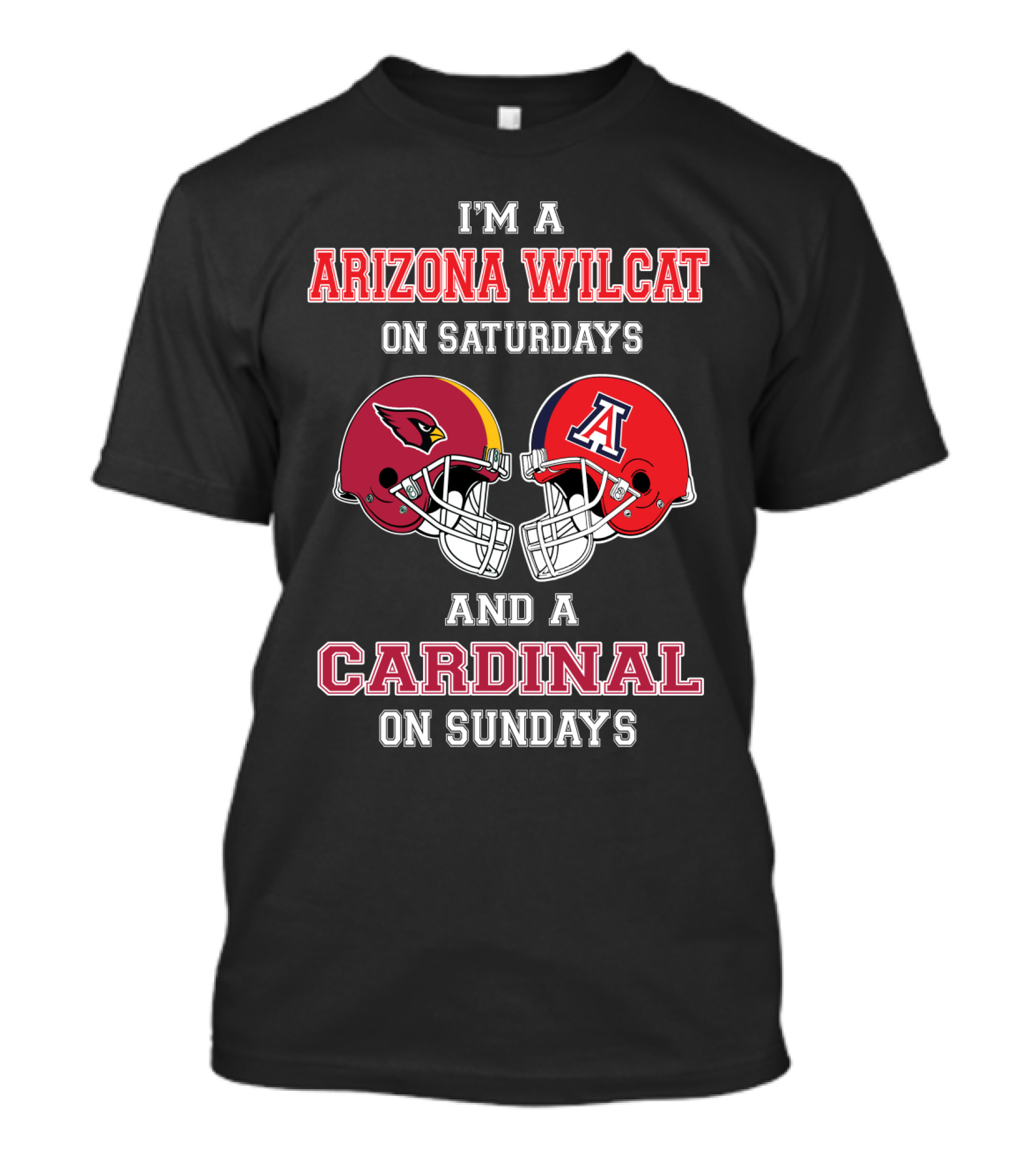 The Arizona Wildcat on Saturdays Cardinal on Sundays T-shirt is designed for everyday wear and a consistent fit. Fabric is pre-shrunk ring-spun cotton with durable stitching. See the size chart below for exact measurements.