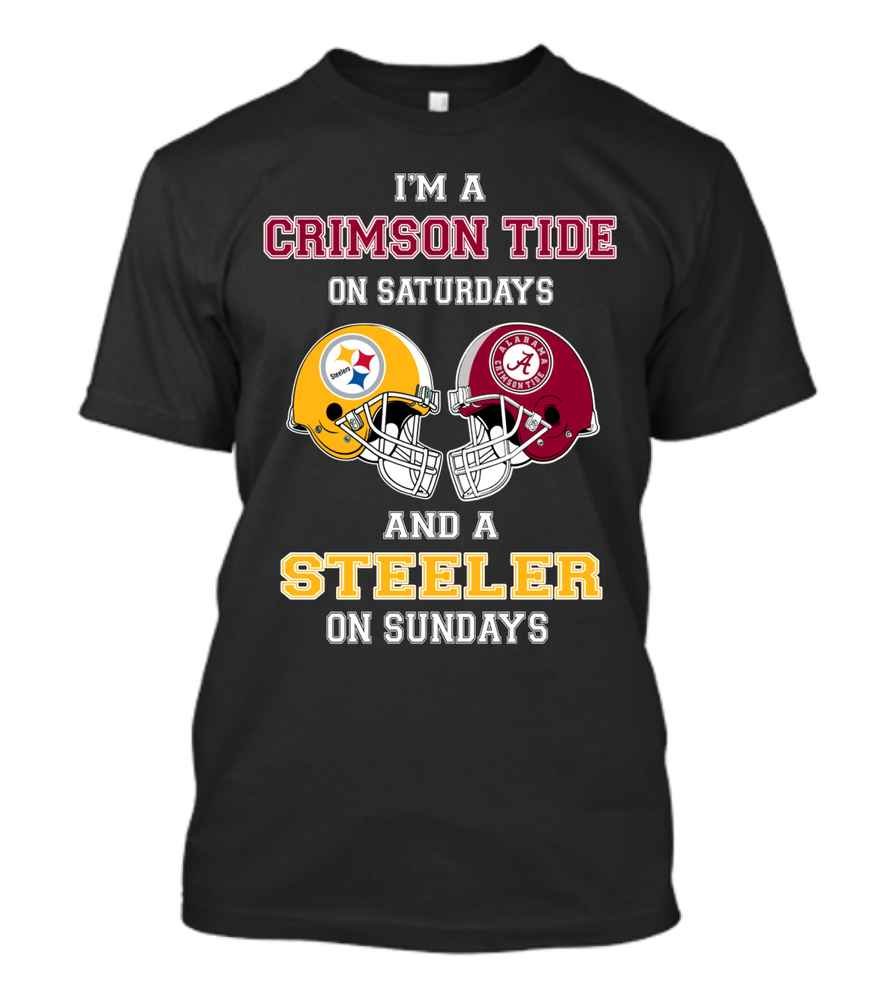 The I'm a Crimson Tide on Saturdays and a Steeler on Sundays T-shirt is designed for everyday wear and a consistent fit. Fabric is pre-shrunk ring-spun cotton with durable stitching. See the size chart below for exact measurements.