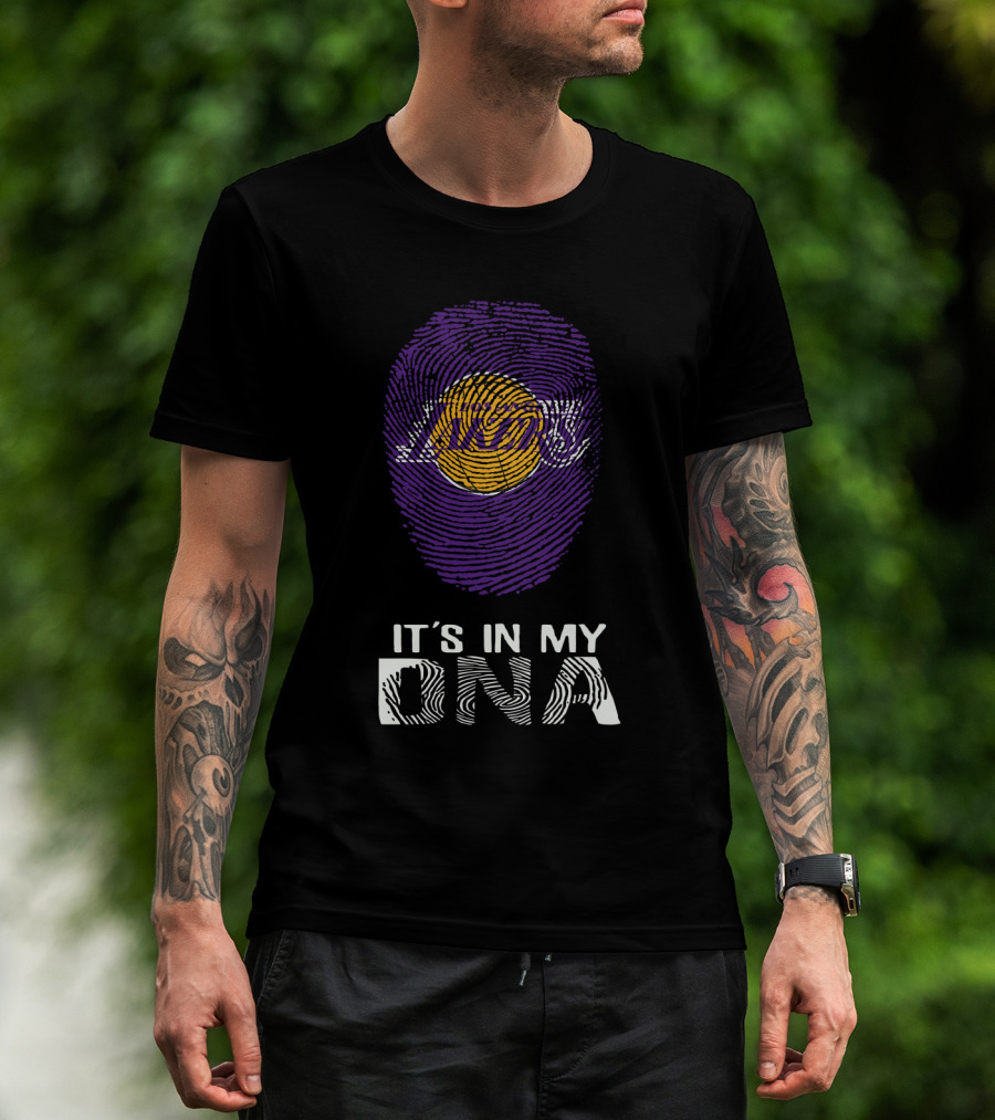 The Lakers Fingerprint It's In My DNA T-shirt is designed for everyday wear and a consistent fit. Fabric is pre-shrunk ring-spun cotton with durable stitching. See the size chart below for exact measurements.