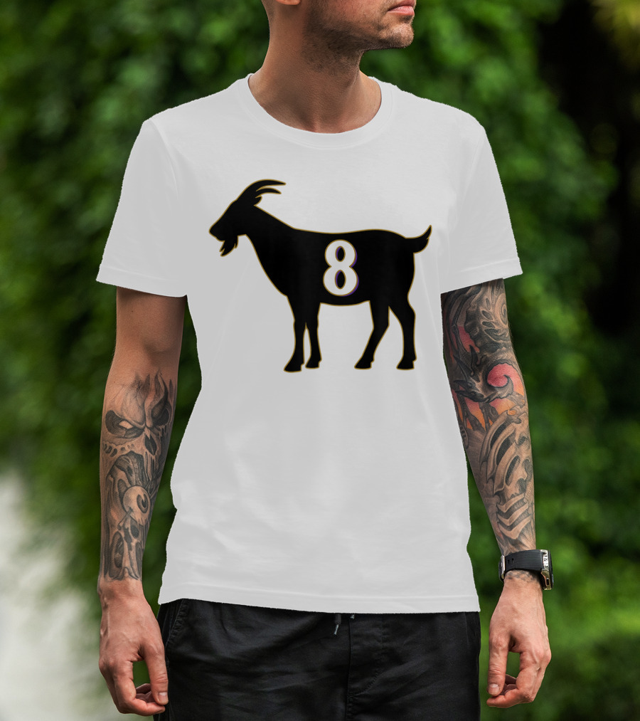 GOAT 8 Baltimore Football Maryland Raven Nation Black Goat Silhouette With Number 8 T-Shirt