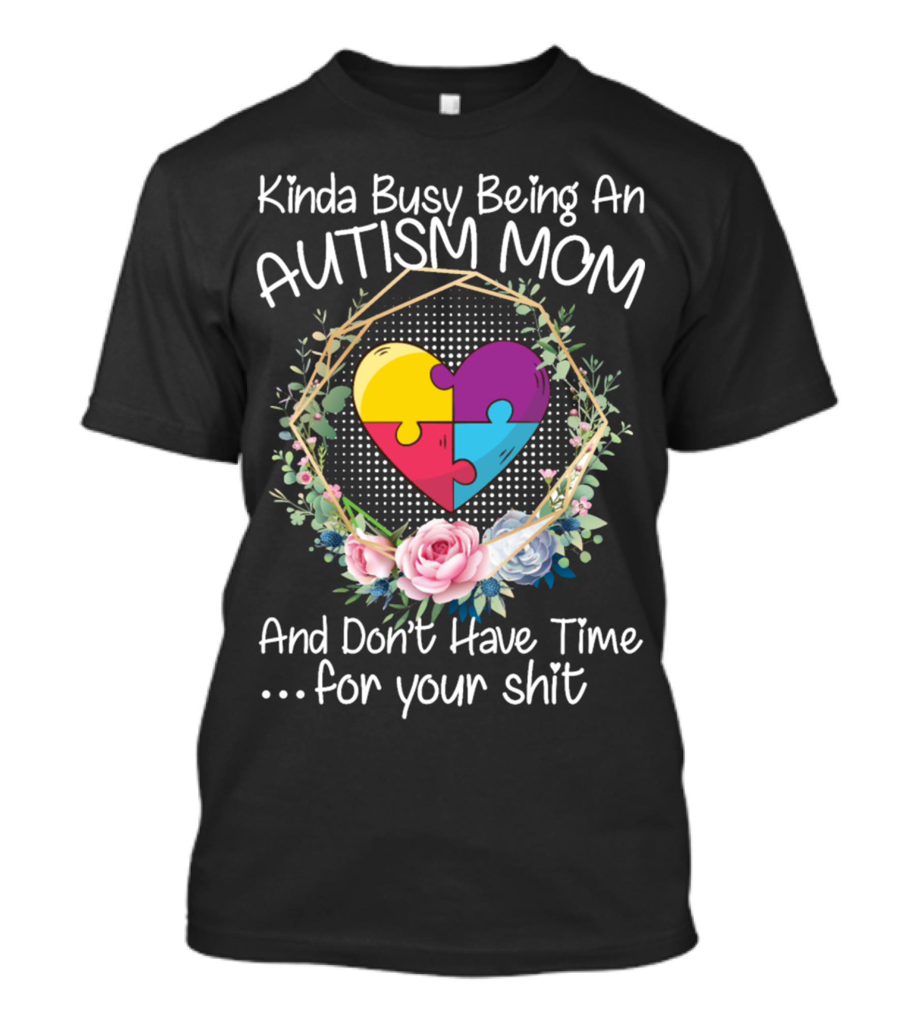 Kinda Busy Being An Autism Mom Heart Puzzle Flowers T-Shirt