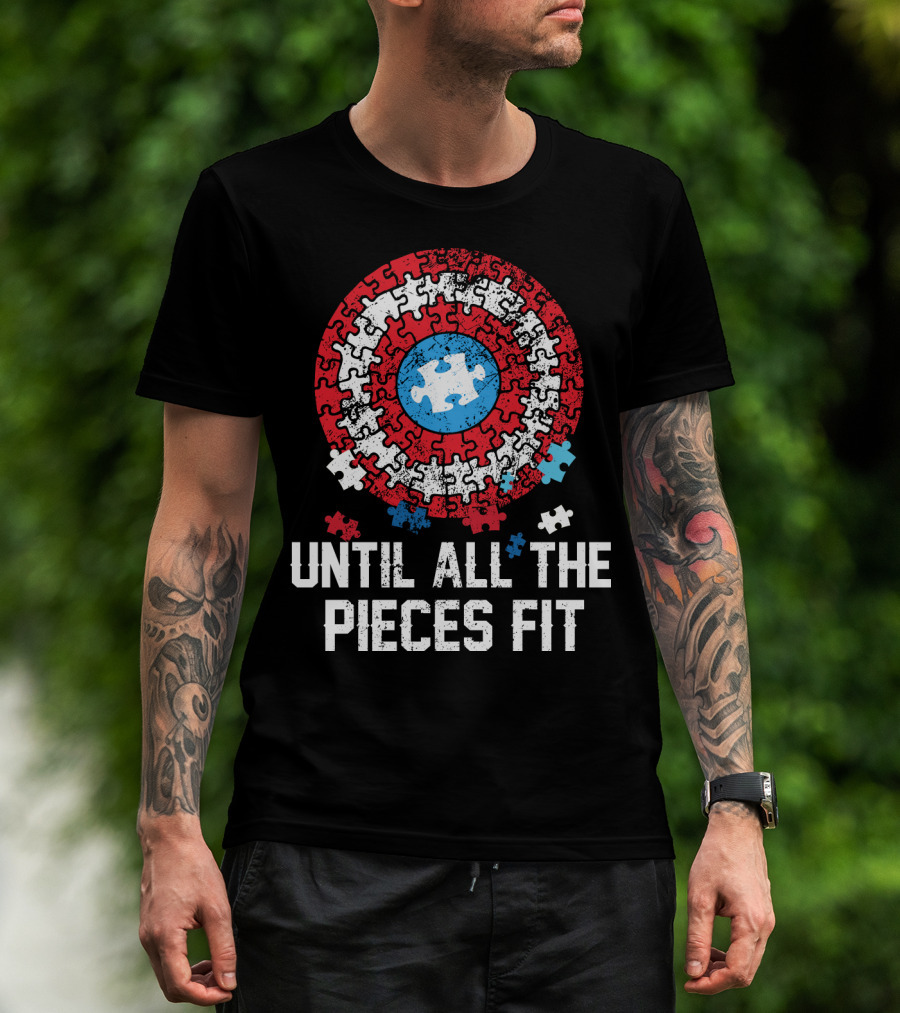 Until All The Pieces Fit Puzzle Shield T-Shirt