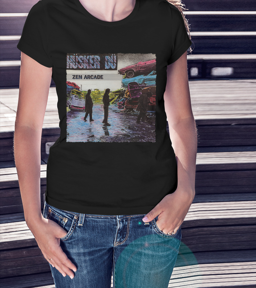 How much will this Husker Du Zen Arcade Album Cover with Silhouetted Figures and Junkyard Scene shirt shrink?