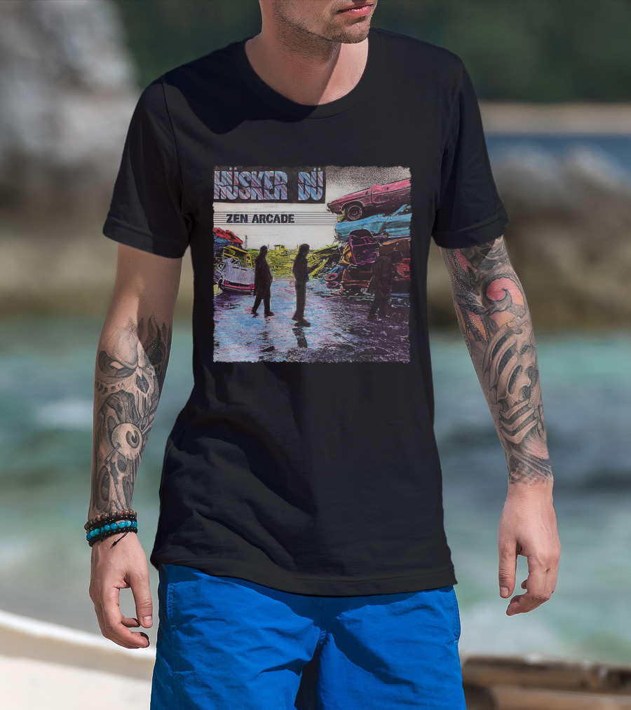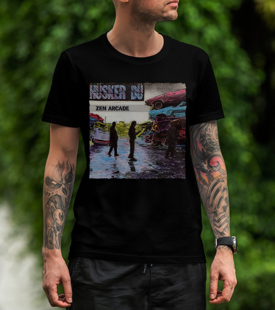 Husker Du Zen Arcade Album Cover With Silhouetted Figures And Junkyard Scene T-Shirt