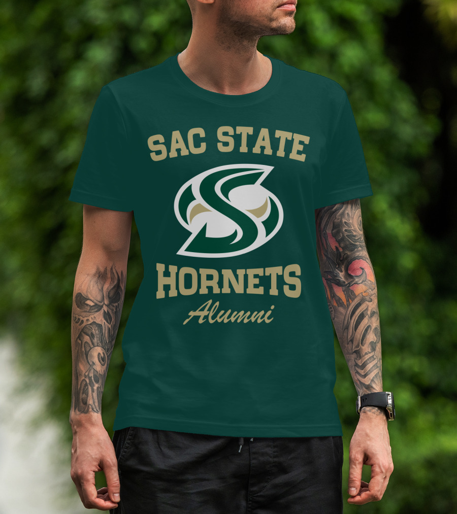 The Sac State Hornets Alumni T-shirt is designed for everyday wear and a consistent fit. Fabric is pre-shrunk ring-spun cotton with durable stitching. See the size chart below for exact measurements.