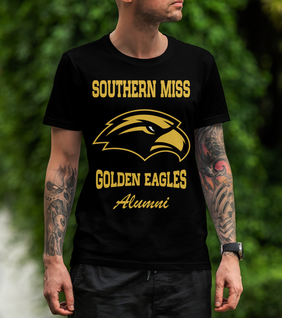 The Southern Miss Golden Eagles Alumni T-shirt is designed for everyday wear and a consistent fit. Fabric is pre-shrunk ring-spun cotton with durable stitching. See the size chart below for exact measurements.