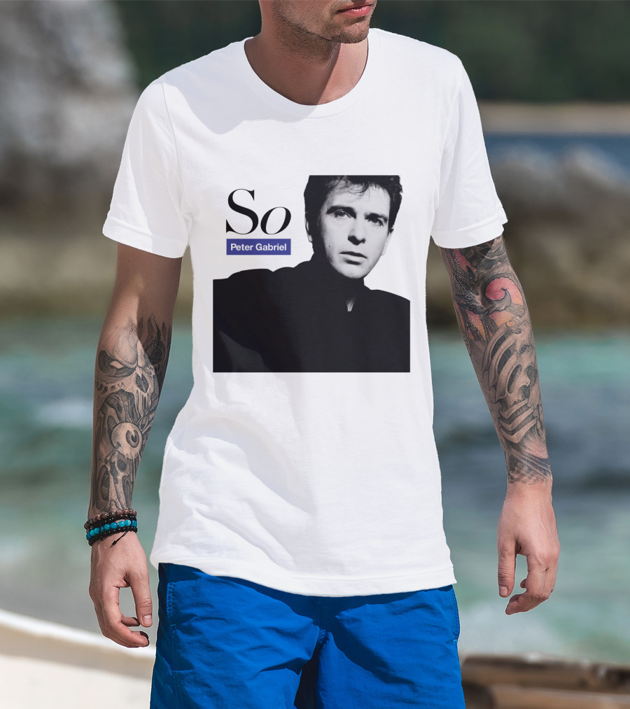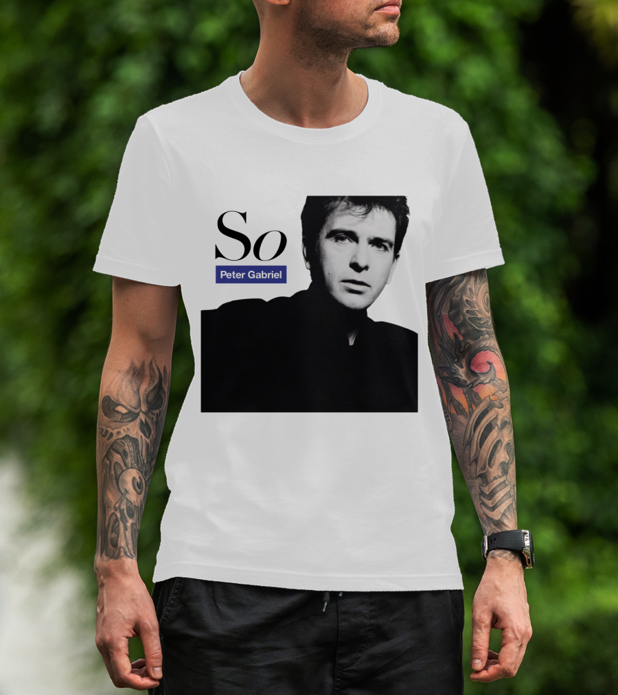 The So Peter Gabriel Album Cover T-shirt is designed for everyday wear and a consistent fit. Fabric is pre-shrunk ring-spun cotton with durable stitching. See the size chart below for exact measurements.