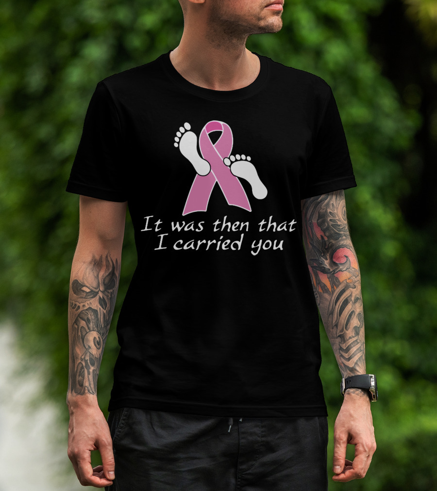 It Was Then That I Carried You Pink Ribbon Footprints T-Shirt