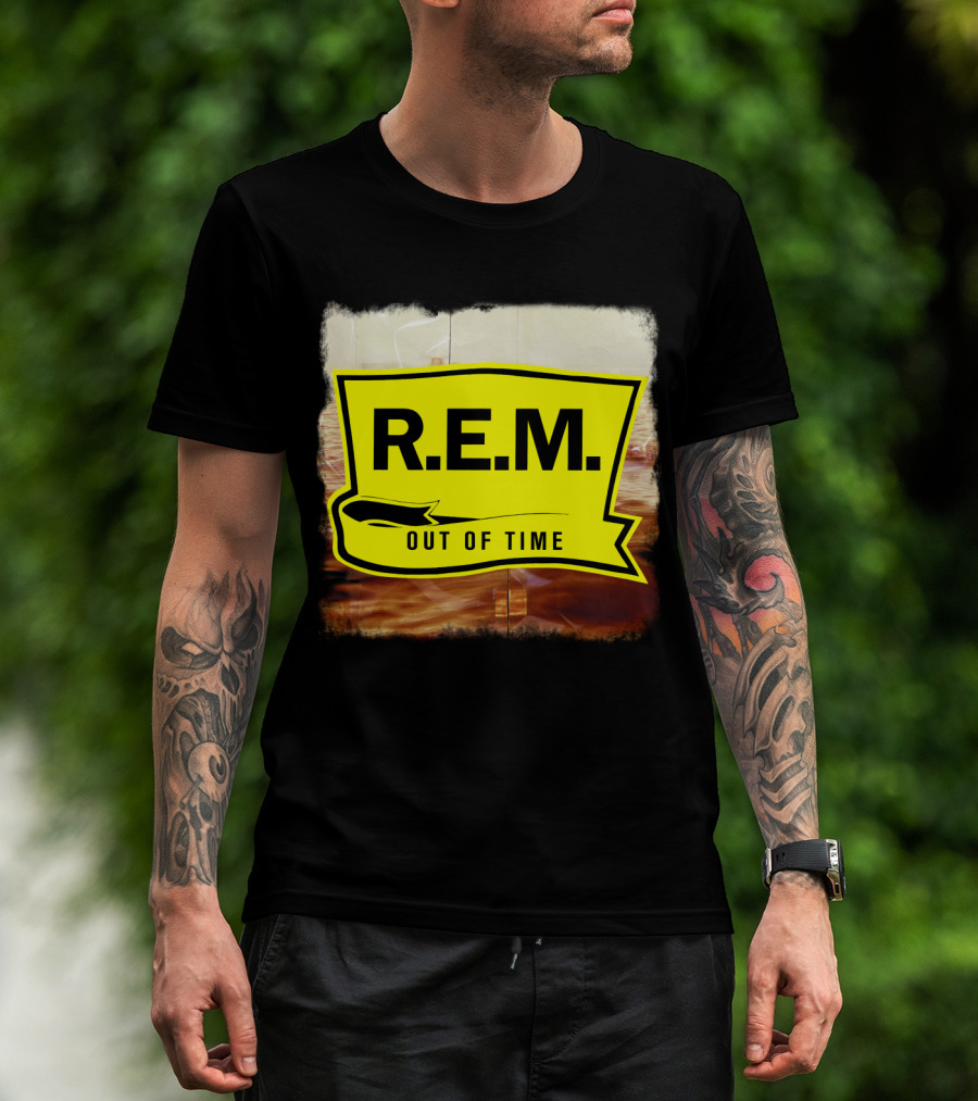 The R.E.M. Out Of Time Yellow Banner T-shirt is designed for everyday wear and a consistent fit. Fabric is pre-shrunk ring-spun cotton with durable stitching. See the size chart below for exact measurements.