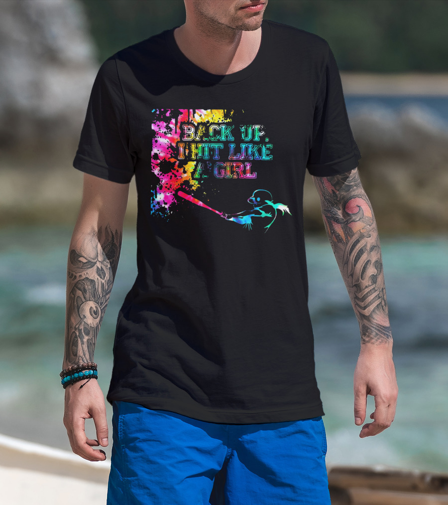 BACK UP I HIT LIKE A GIRL Colorful Baseball Player T-Shirt