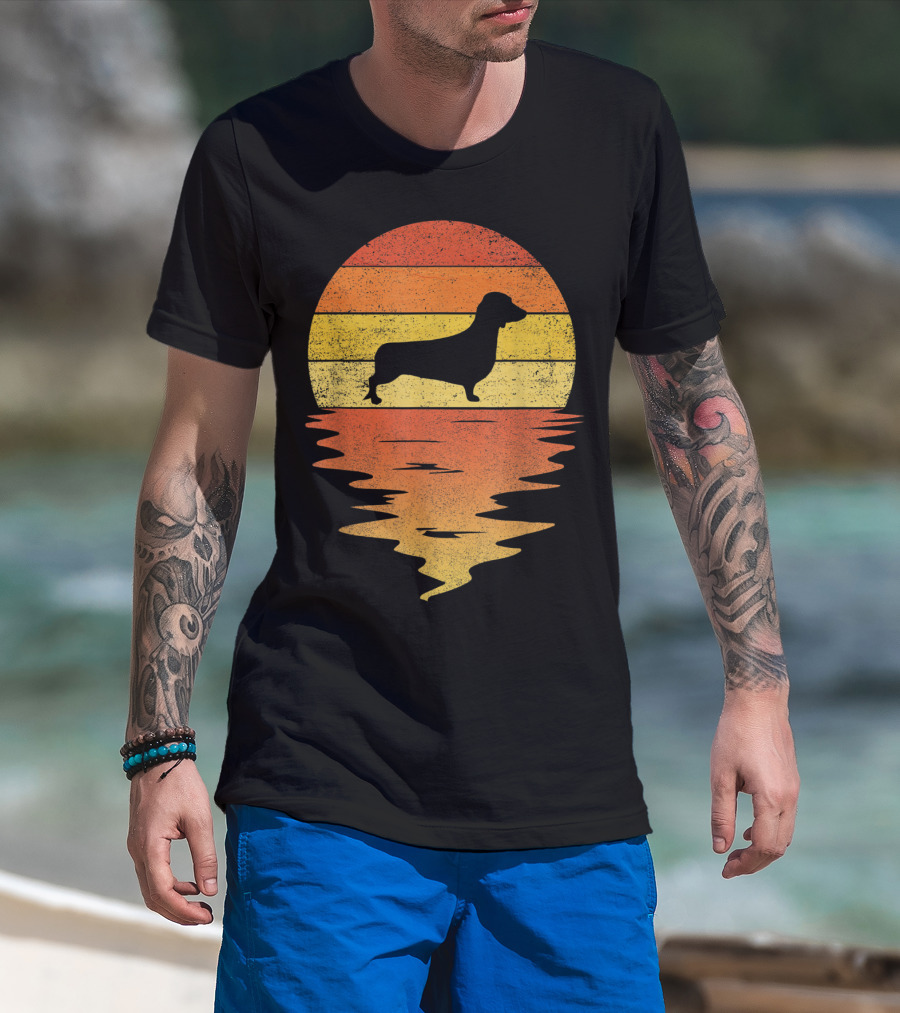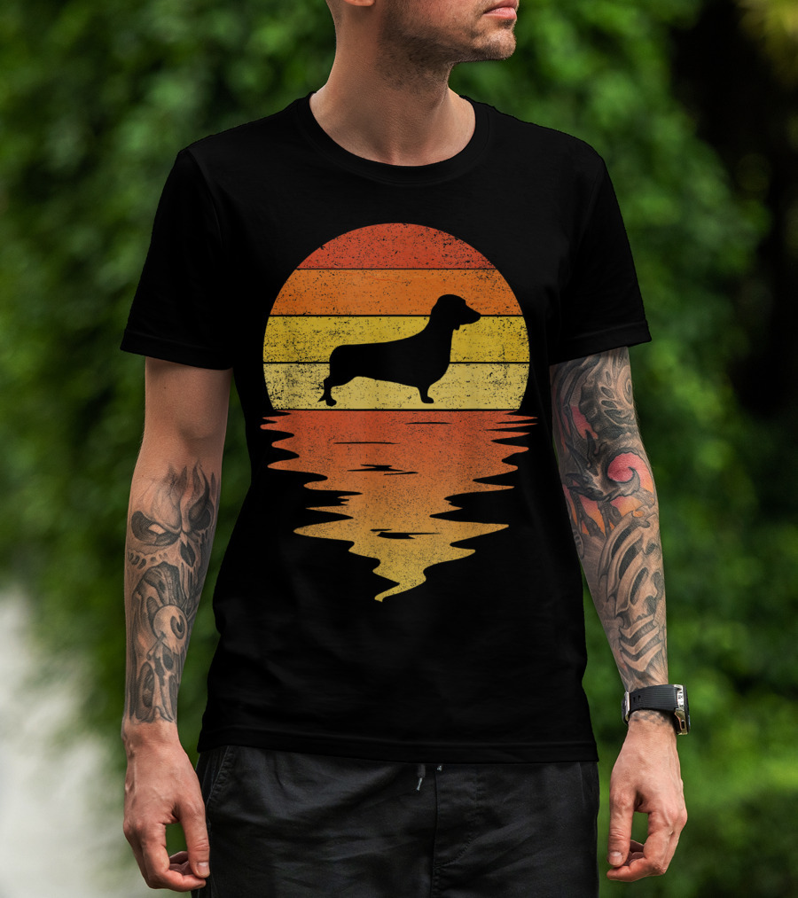 Dachshund Silhouette 70s Vintage Sunset T-Shirt