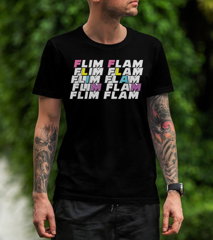 The FLIM FLAM Stacked T-shirt is designed for everyday wear and a consistent fit. Fabric is pre-shrunk ring-spun cotton with durable stitching. See the size chart below for exact measurements.