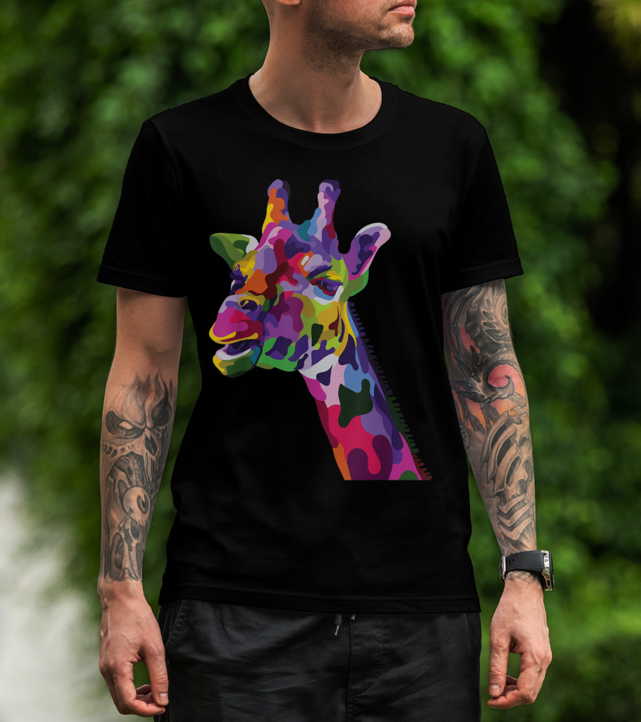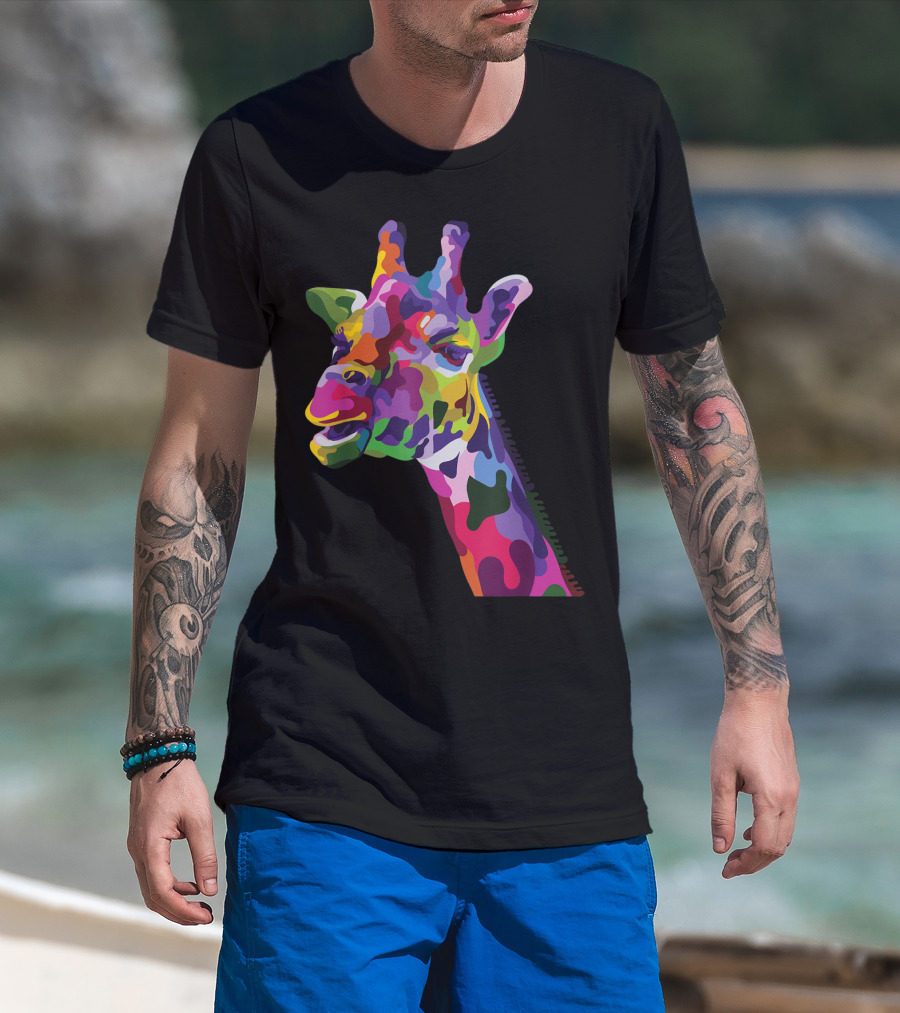 The Giraffe Support Colorful Psychedelic T-shirt is designed for everyday wear and a consistent fit. Fabric is pre-shrunk ring-spun cotton with durable stitching. See the size chart below for exact measurements.