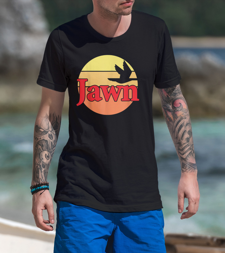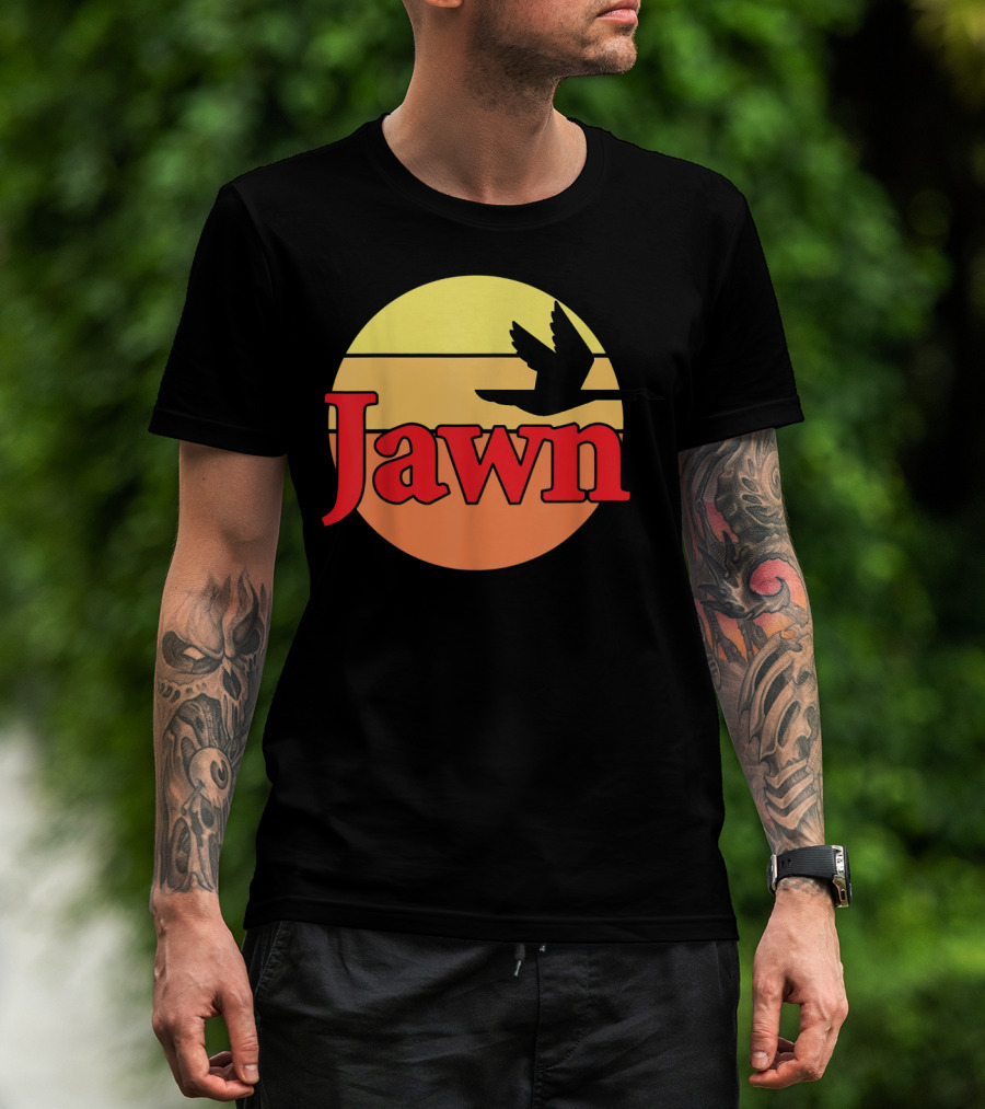 The Wawa Jawn Sunset Silhouette Bird T-shirt is designed for everyday wear and a consistent fit. Fabric is pre-shrunk ring-spun cotton with durable stitching. See the size chart below for exact measurements.
