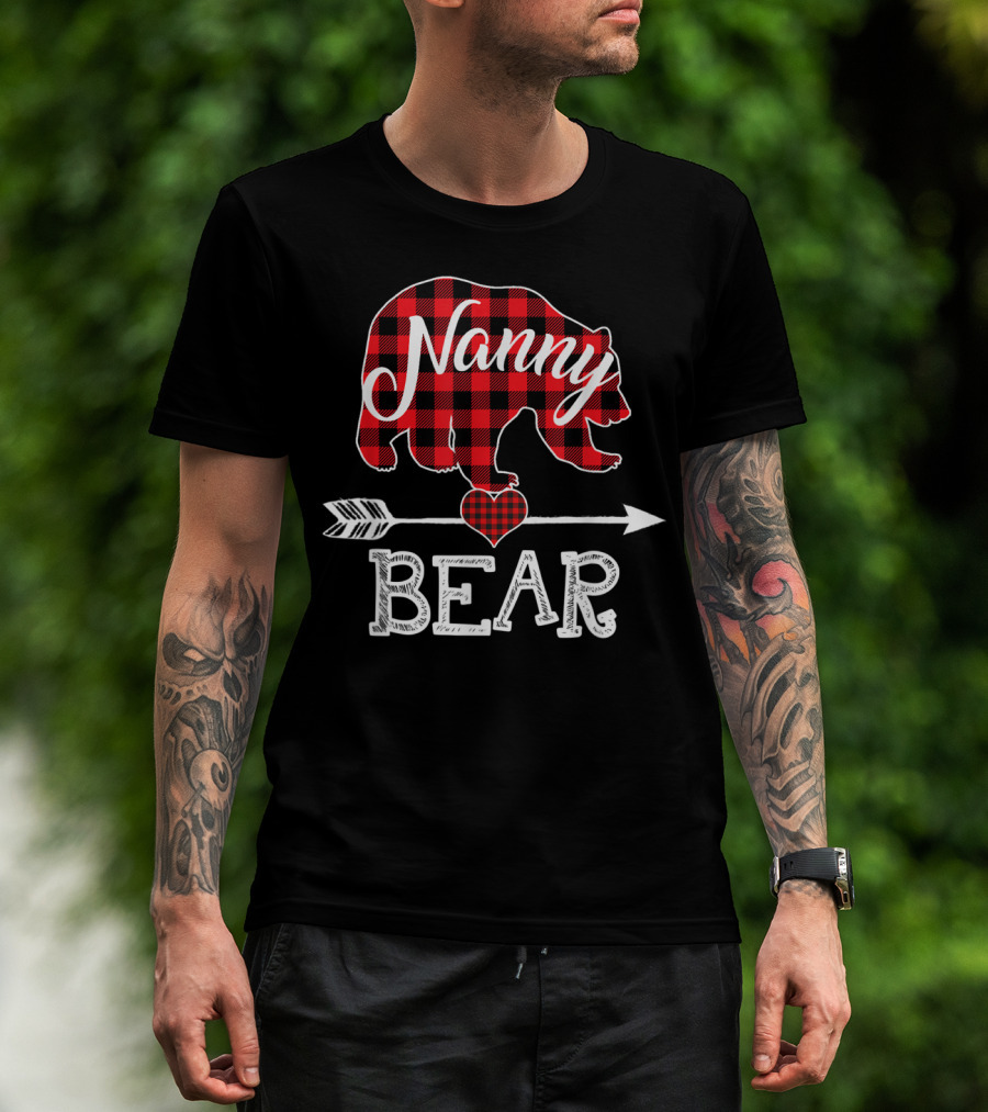 Nanny Bear Plaid Heart Arrow Buffalo Christmas T-Shirt