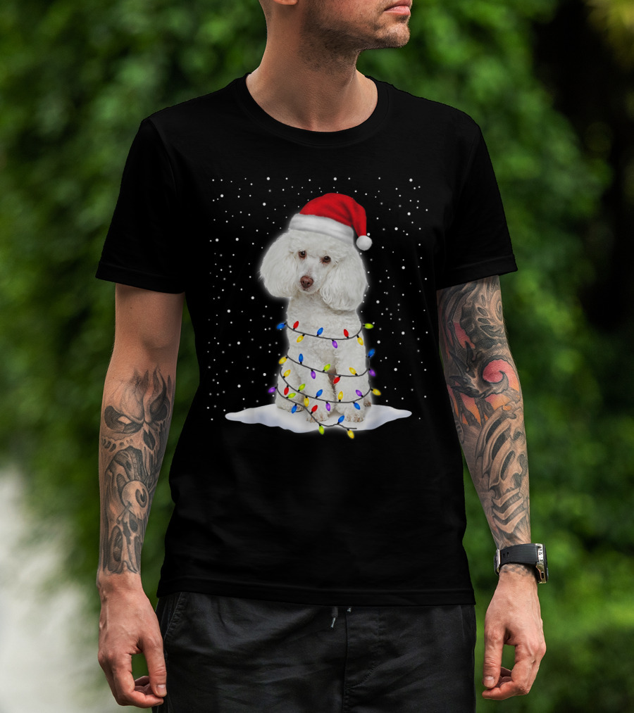 Poodle Santa Christmas Tree Decor With Colorful String Lights Snowfall T-Shirt