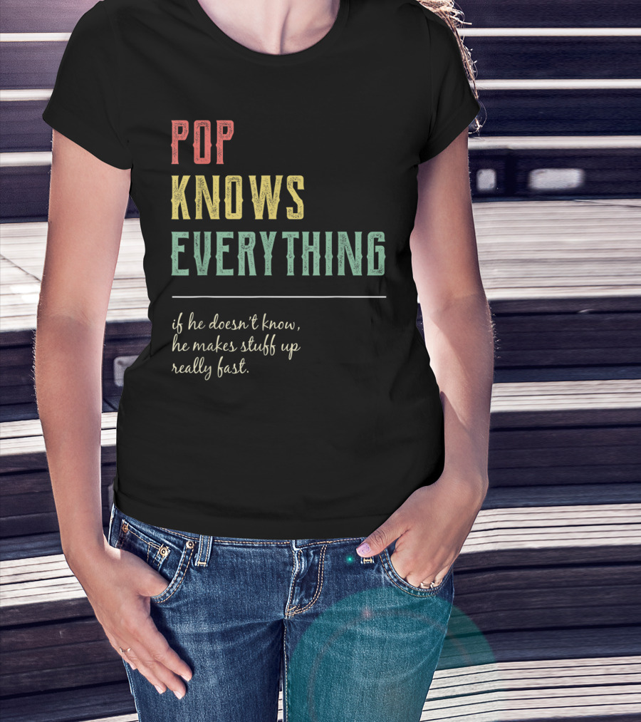 The Pop Knows Everything If He Doesn't Know He Makes Stuff Up Really Fast T-shirt is designed for everyday wear and a consistent fit. Fabric is pre-shrunk ring-spun cotton with durable stitching. See the size chart below for exact measurements.