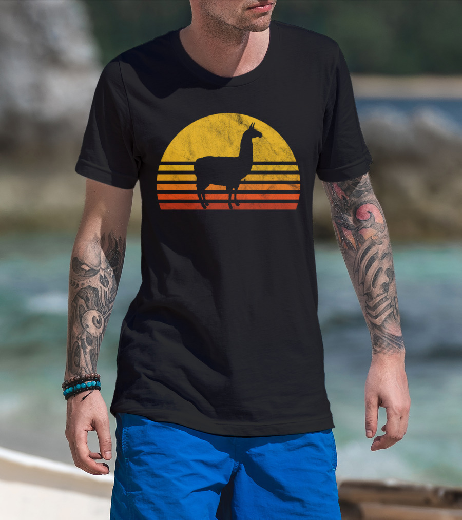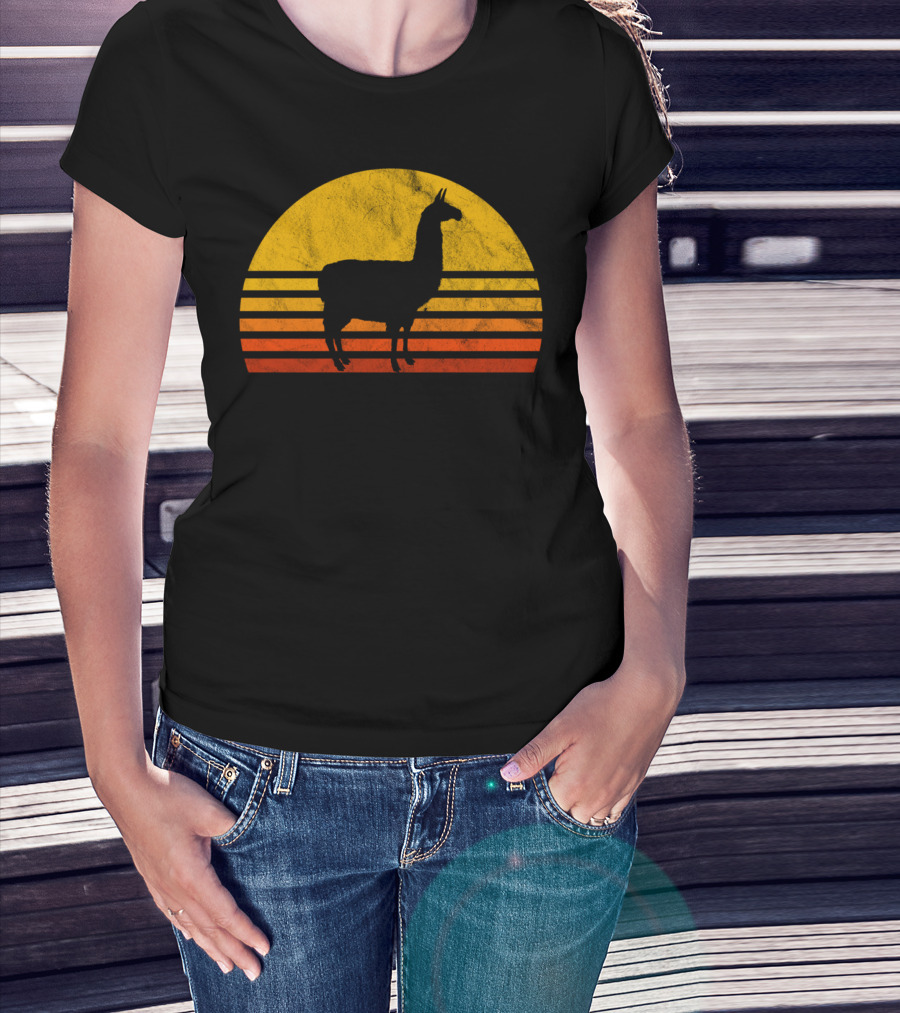 The Retro Llama Silhouette Against Sunset Colors T-shirt is designed for everyday wear and a consistent fit. Fabric is pre-shrunk ring-spun cotton with durable stitching. See the size chart below for exact measurements.