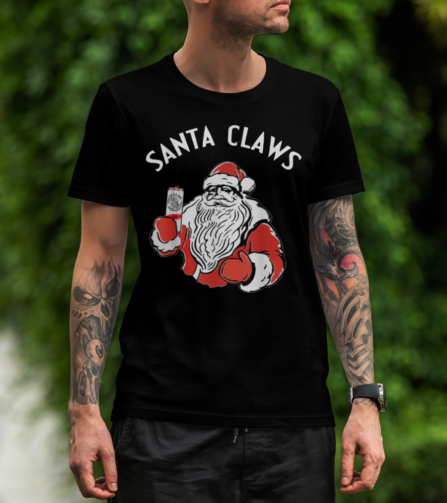 The Santa Claws Christmas White Claw Santa T-shirt is designed for everyday wear and a consistent fit. Fabric is pre-shrunk ring-spun cotton with durable stitching. See the size chart below for exact measurements.