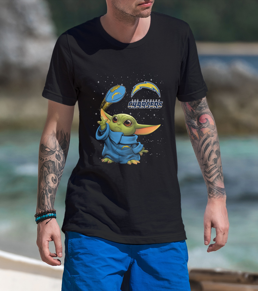 Baby Yoda Los Angeles Chargers Football Star Wars Crossover T-Shirt